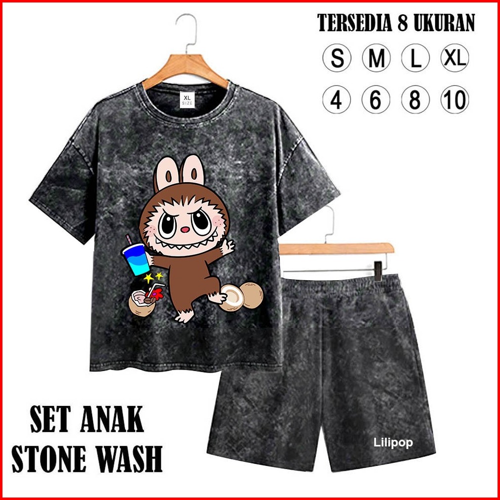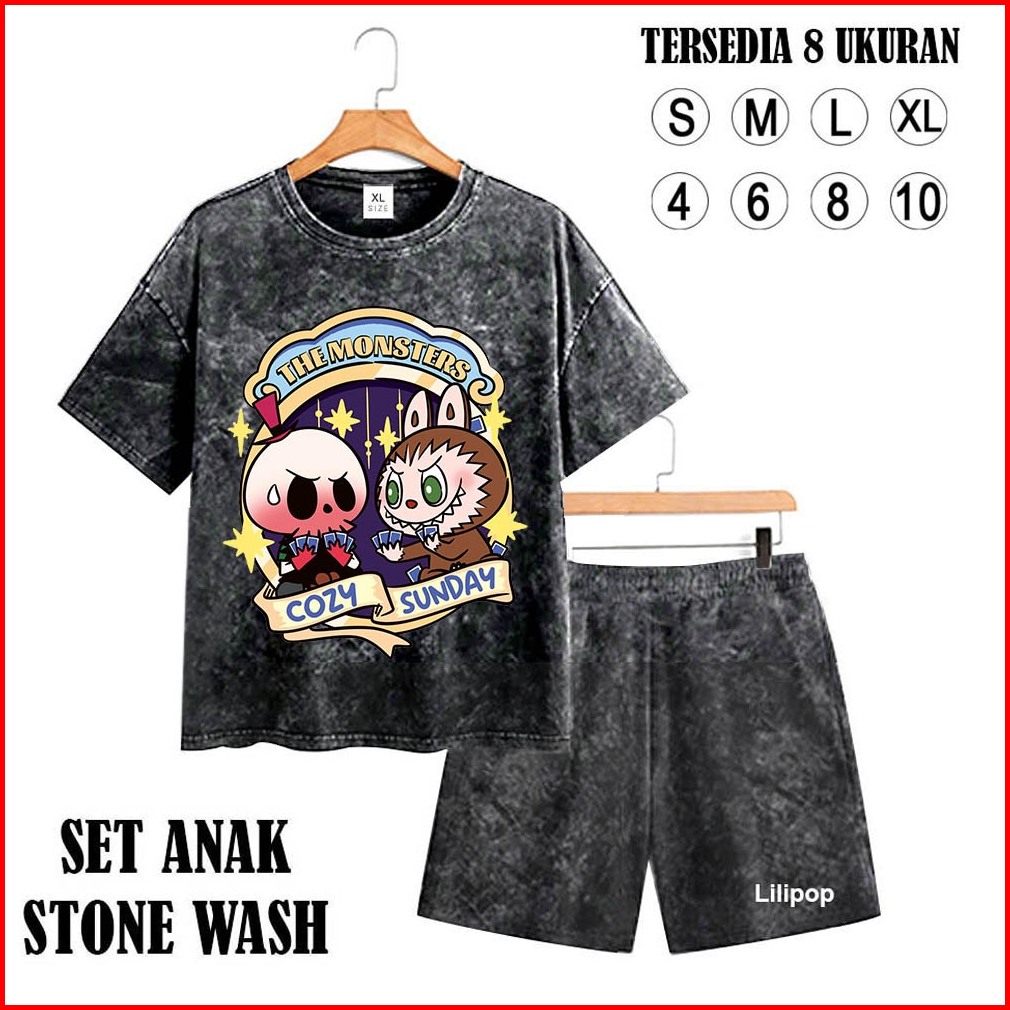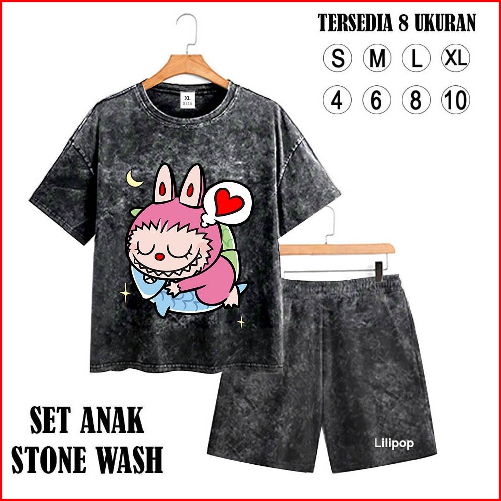 Setelan Anak Set Wash Baju Anak Unisex Cowok Cewek Usia 1- 10 Tahun Labubu Monster