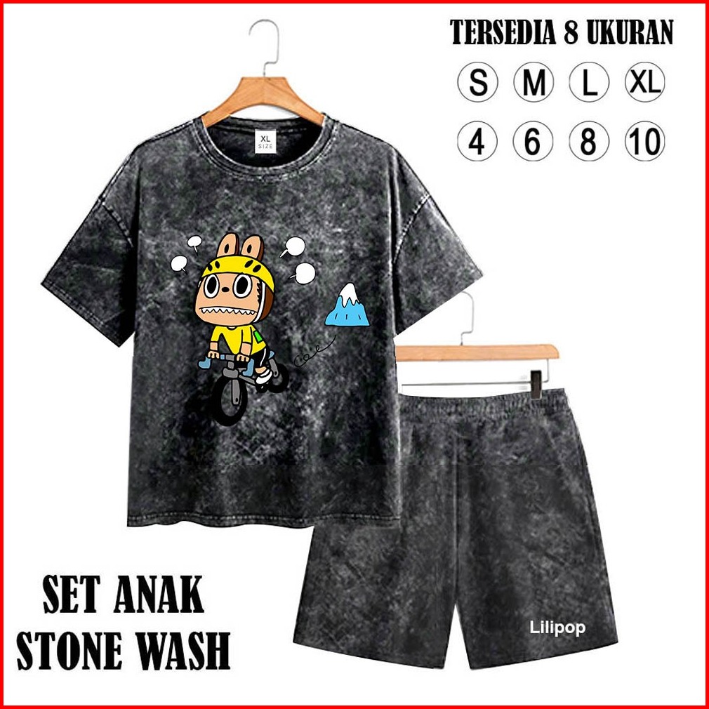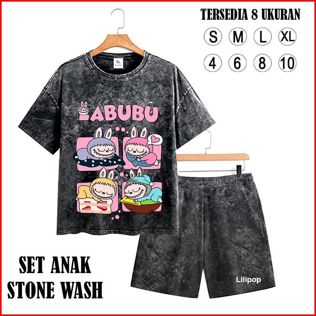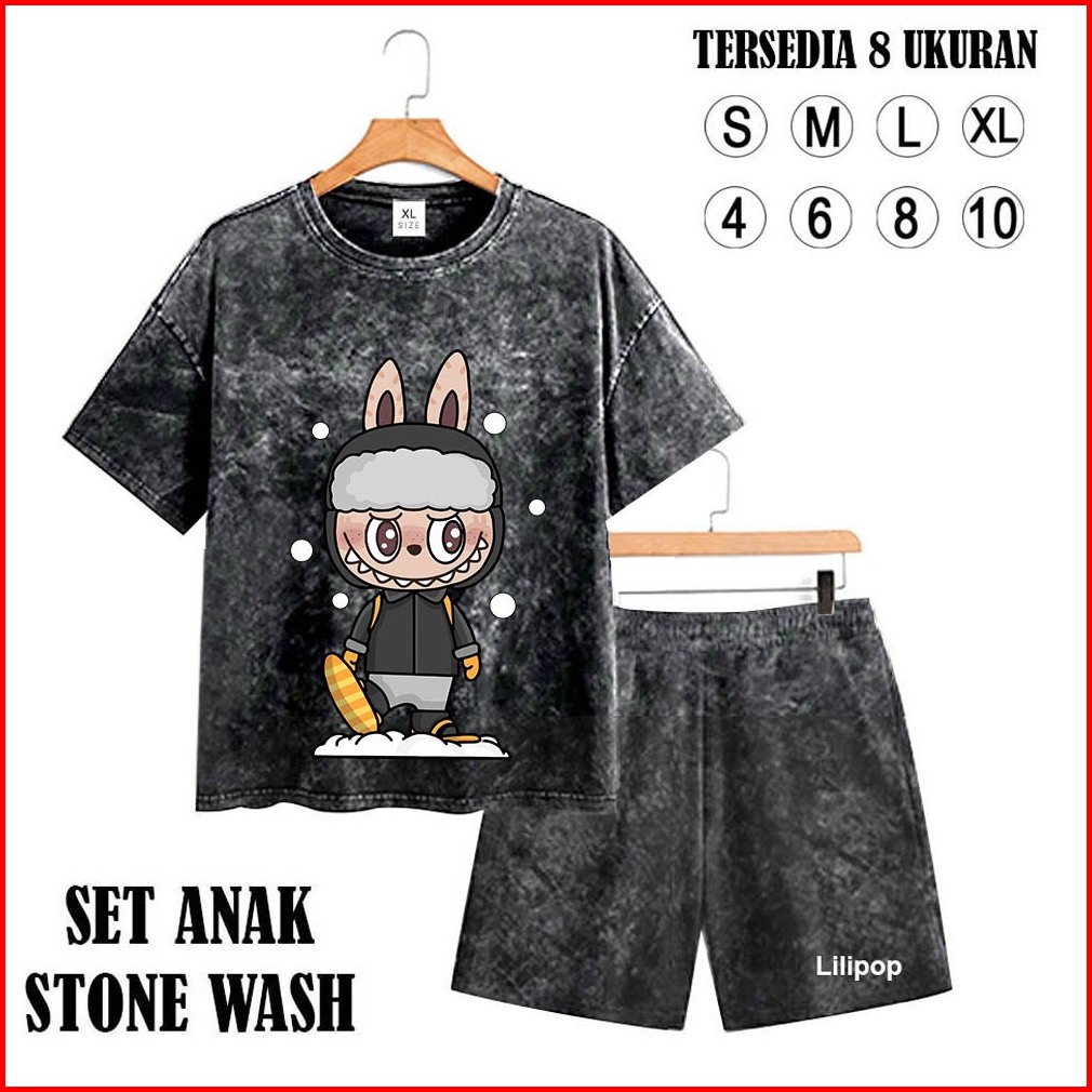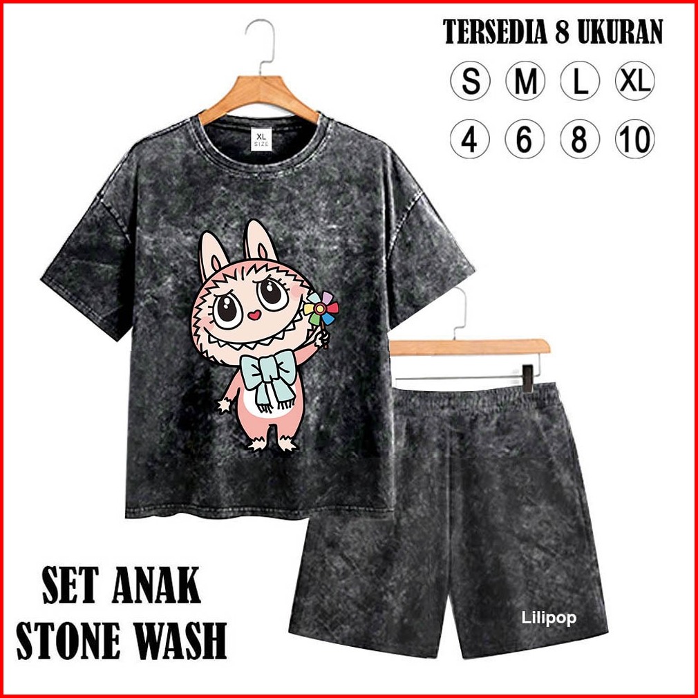Setelan Anak Set Wash Baju Anak Unisex Cowok Cewek Usia 1- 10 Tahun Labubu Monster