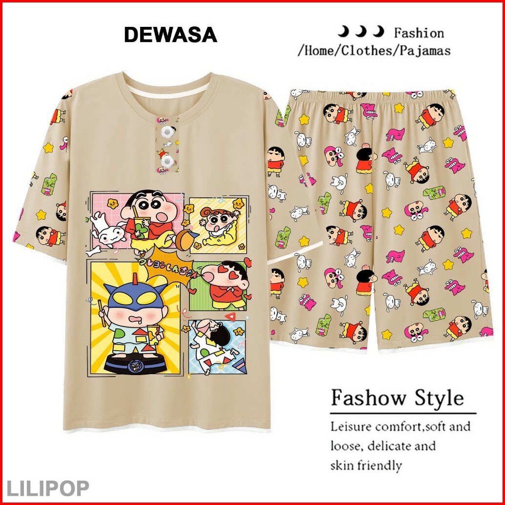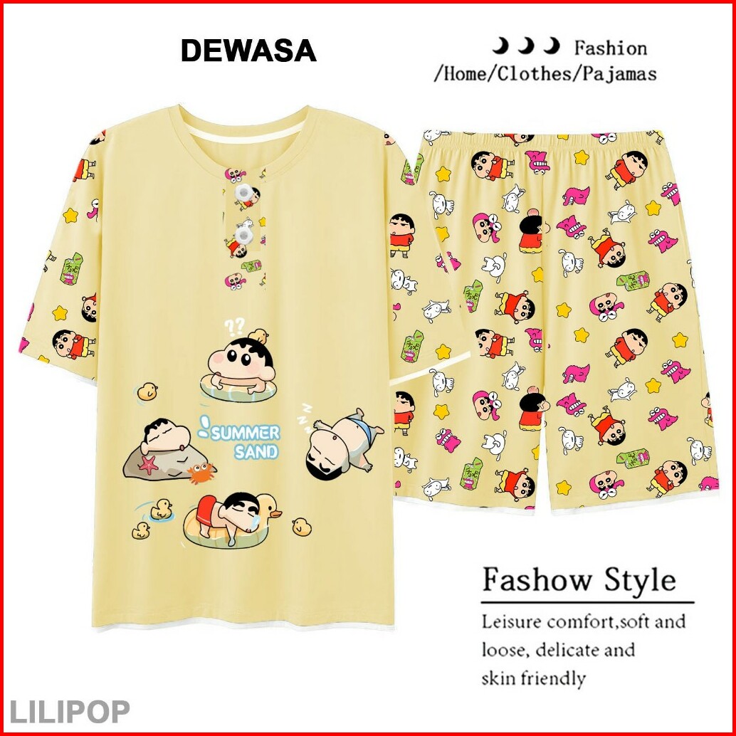 Lilipop.id Baju Tidur Wanita 3 4 Dewasa All Size Dan Jumbo Xxl Sinchan Celana Pendek Allsize Baby Doll Bahan Kaos Dewasa