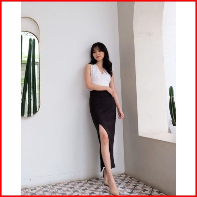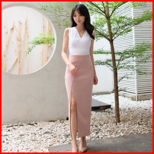 Maxi Slit Skirt Rok Span Korean Style Stretch Premium