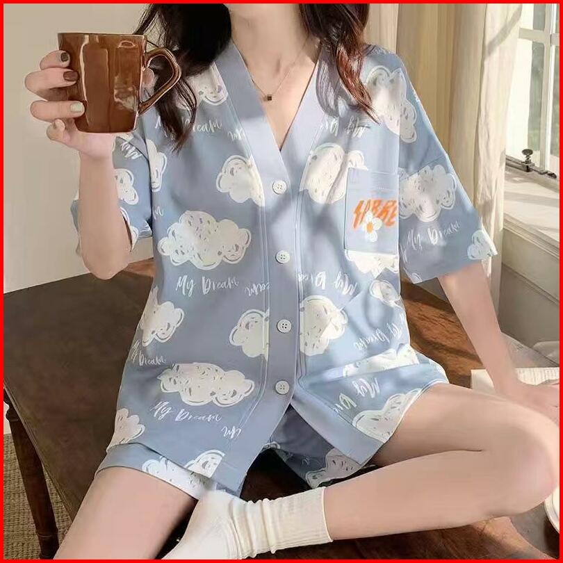 Bbi Piyama Wanita Dewasa Motif Karakter Animasi Lucu Set Baju Tidur Perempuan Lengan Celana Pendek Full Kancing Bahan Ka