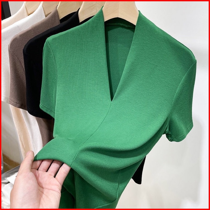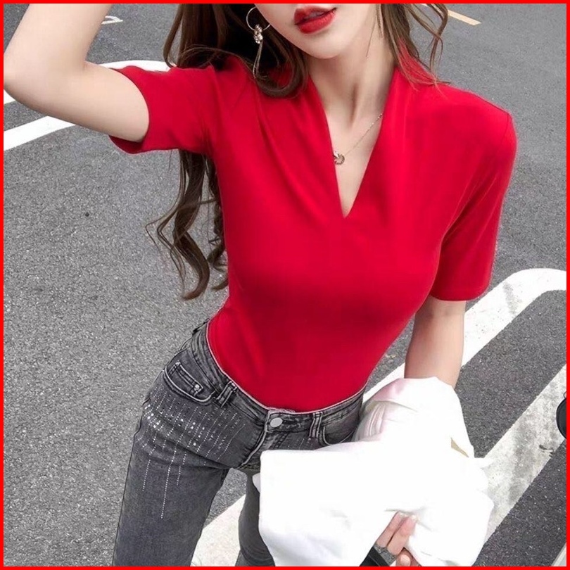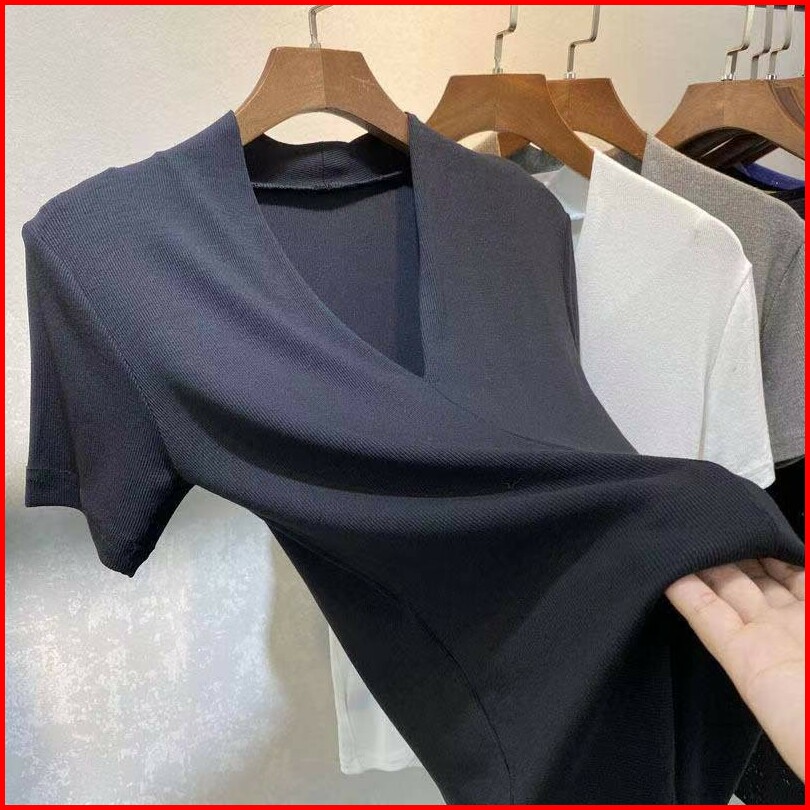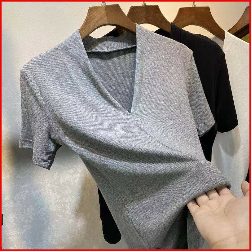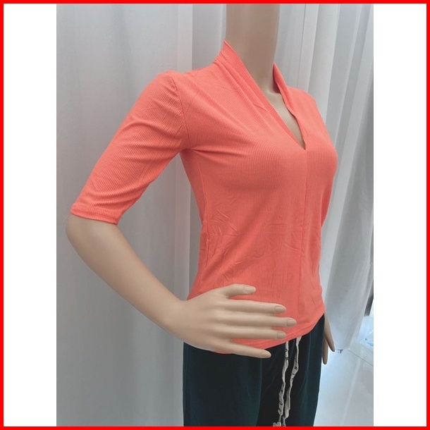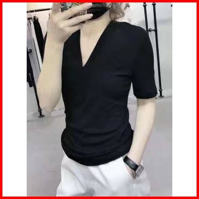 T Shirt Atasan Wanita Baju Kaos V Neck Slim Fit Kualitas Bagus T1 1896