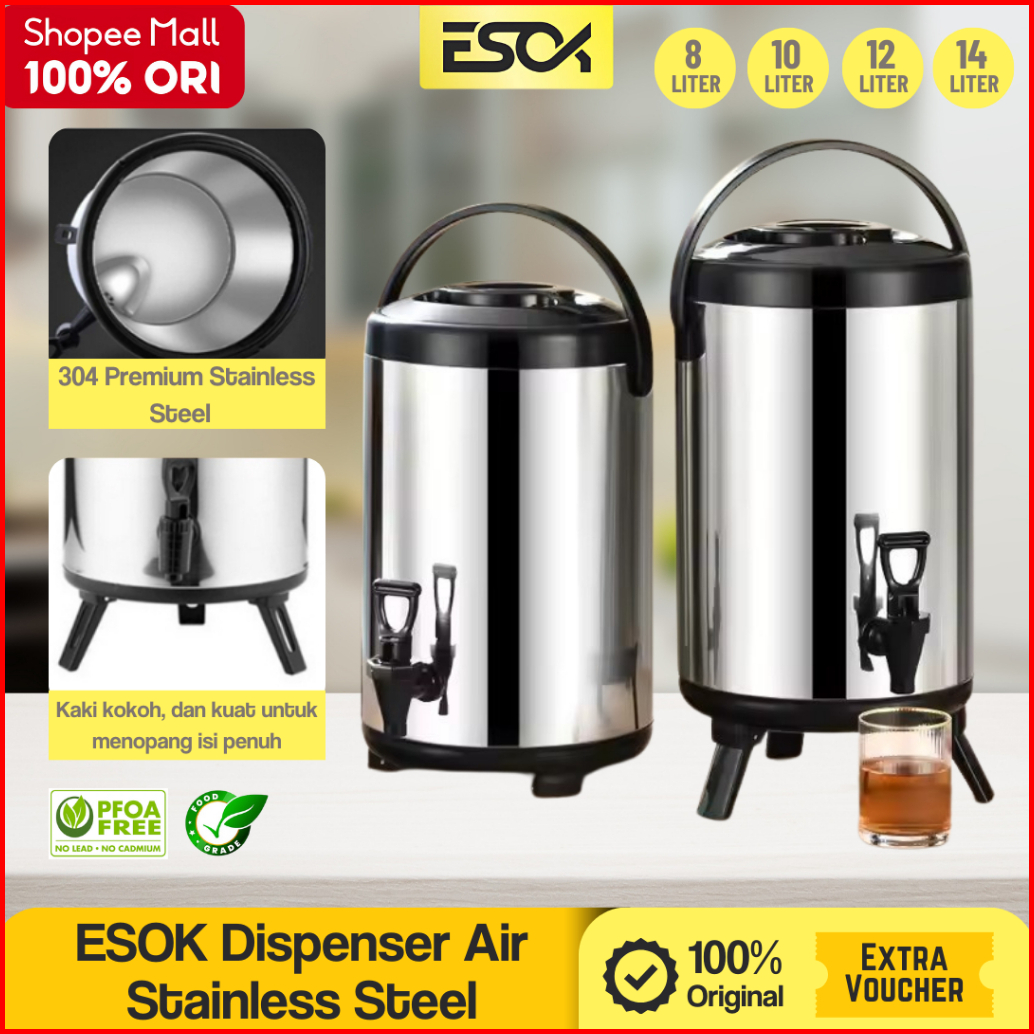 Esok Milk Tea Dispenser Air Minum Stainless Steel Sus304 8l 10l 12l 14l