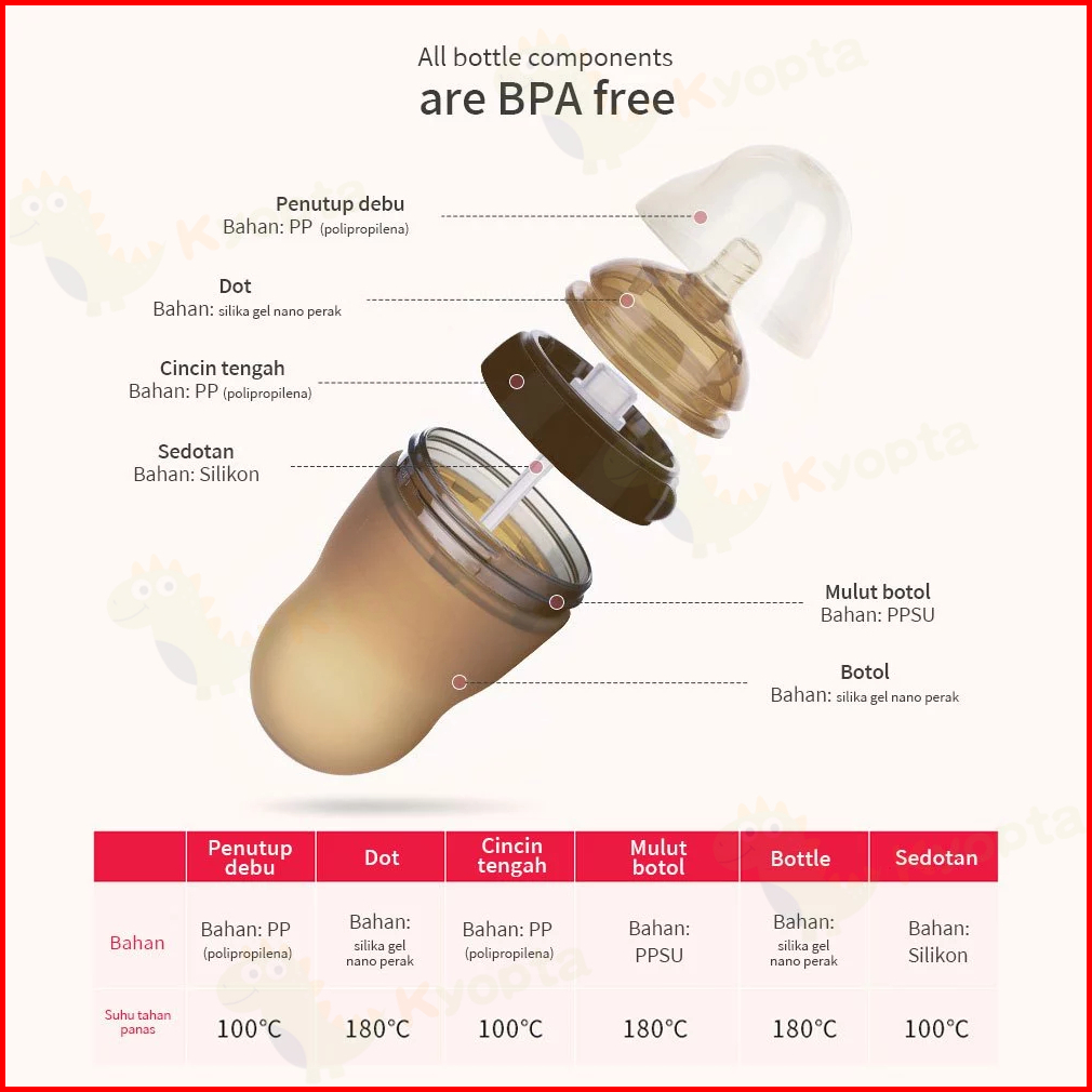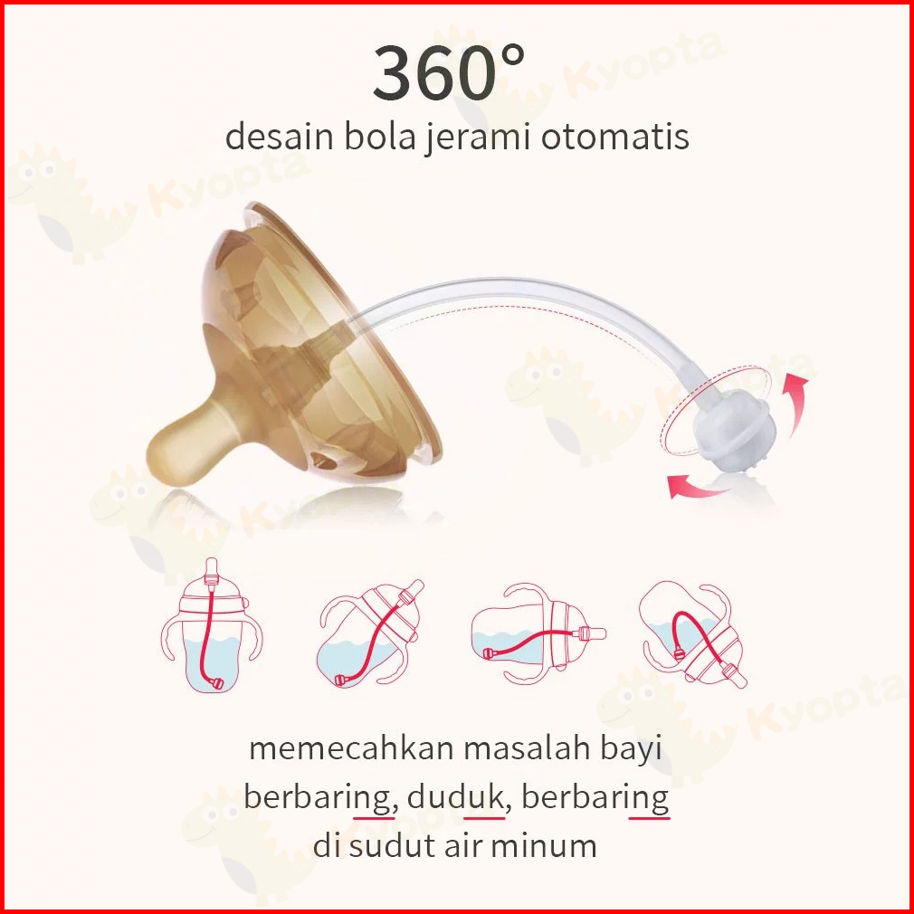 Kyopta Botol Susu Bayi Silikon Leher Lebar Botol Dengan Sedotan