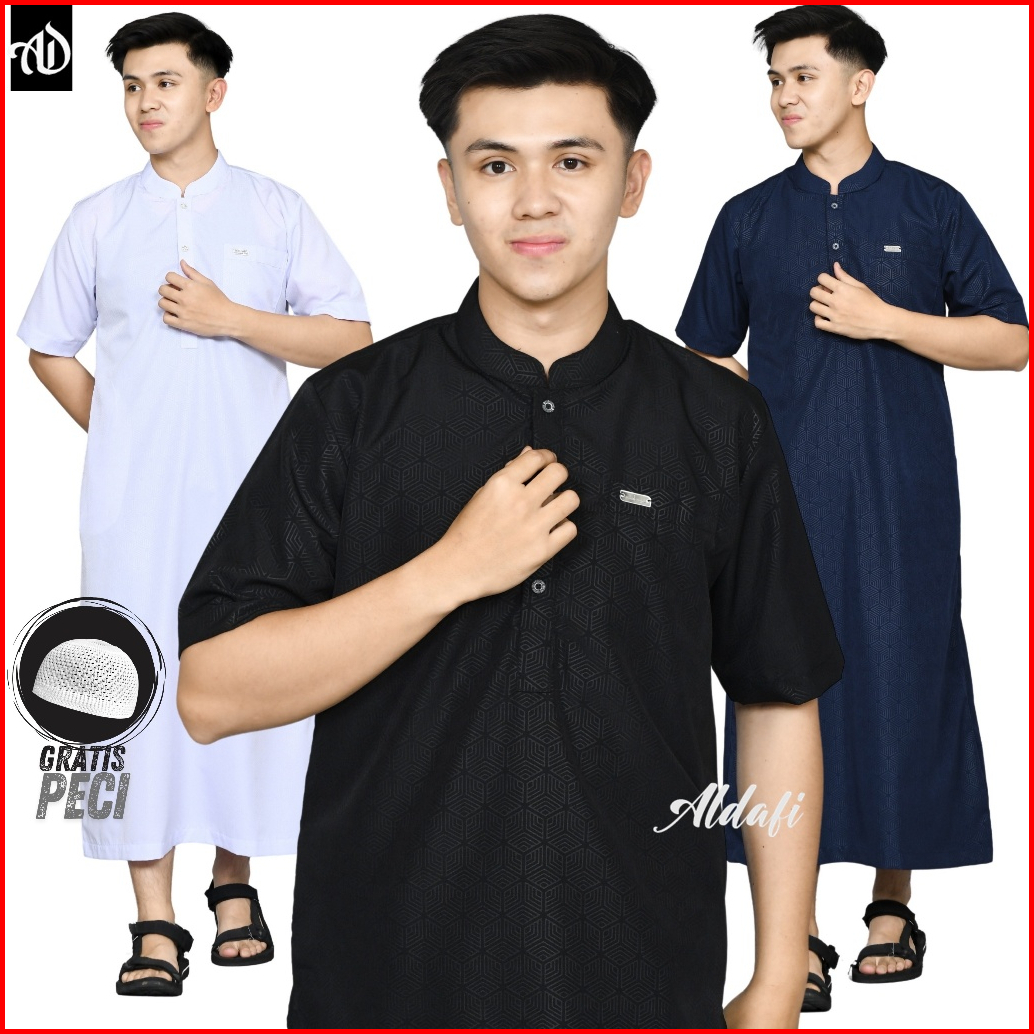 Jubah Pria Lengan Pendek Motif Embos Simple Dan Elegant