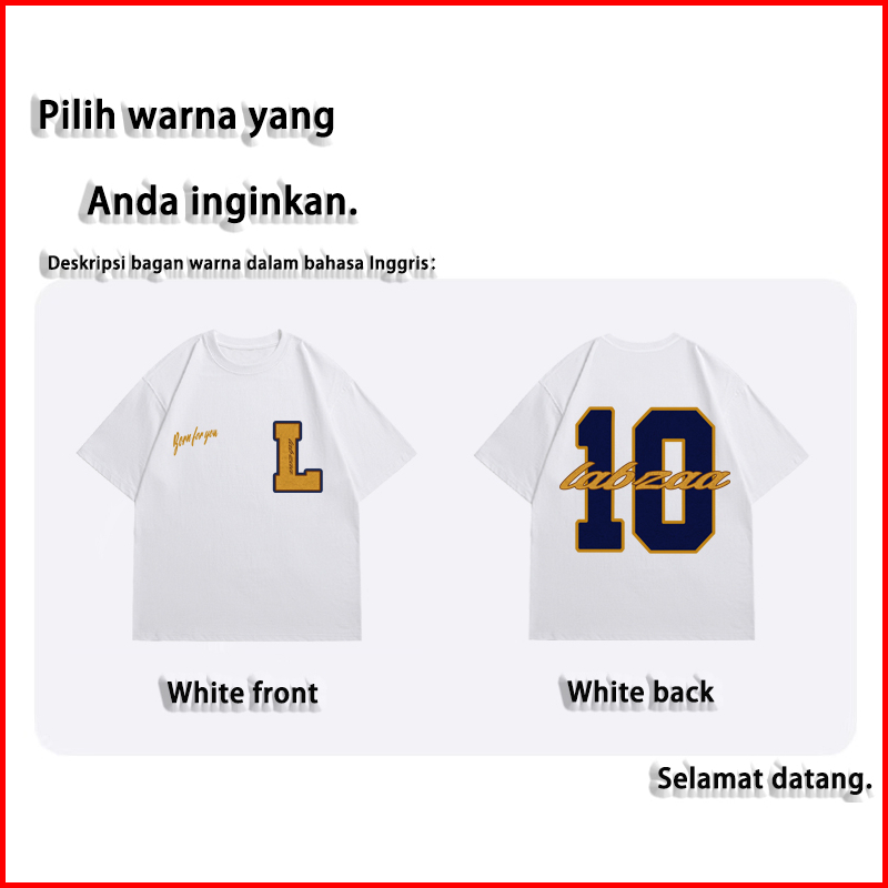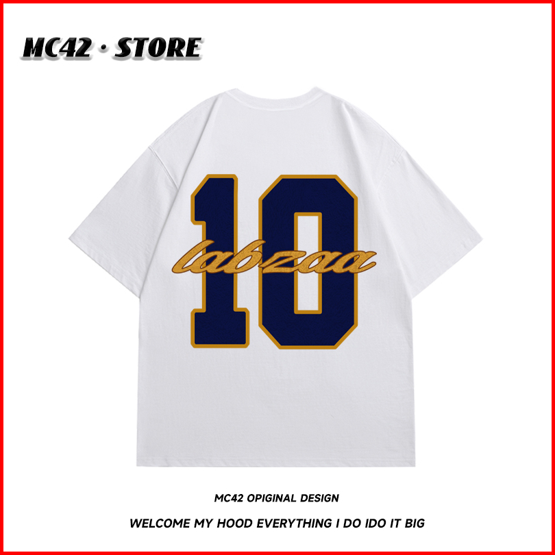 Kaos Lengan Pendek Katun Putih Asli Kelas Berat Sederhana Nomor 10 Cetak Pria Longgar Seratus Pasang Atasan Kasual Pasan