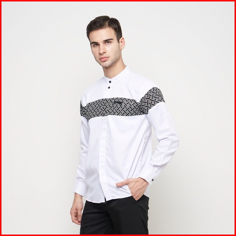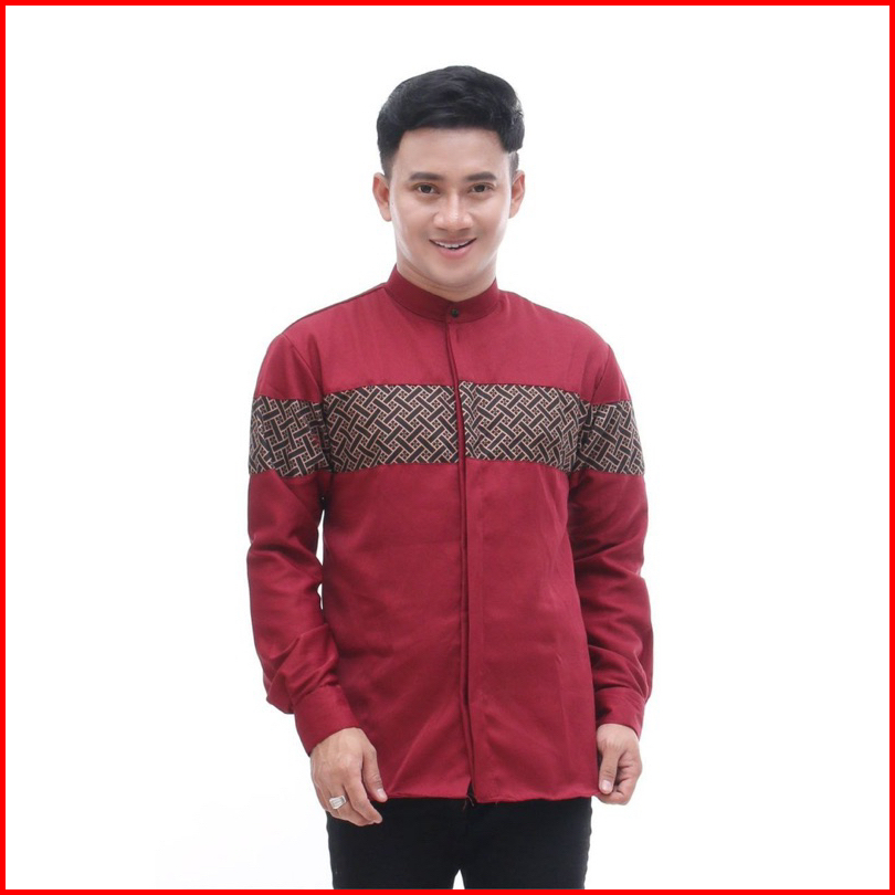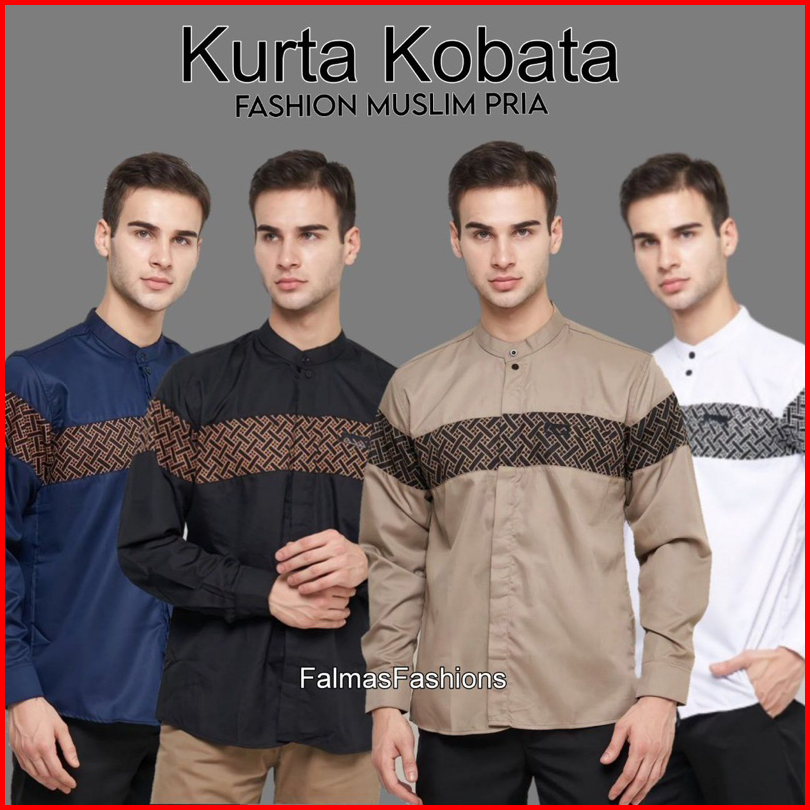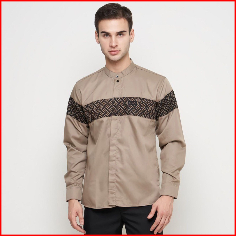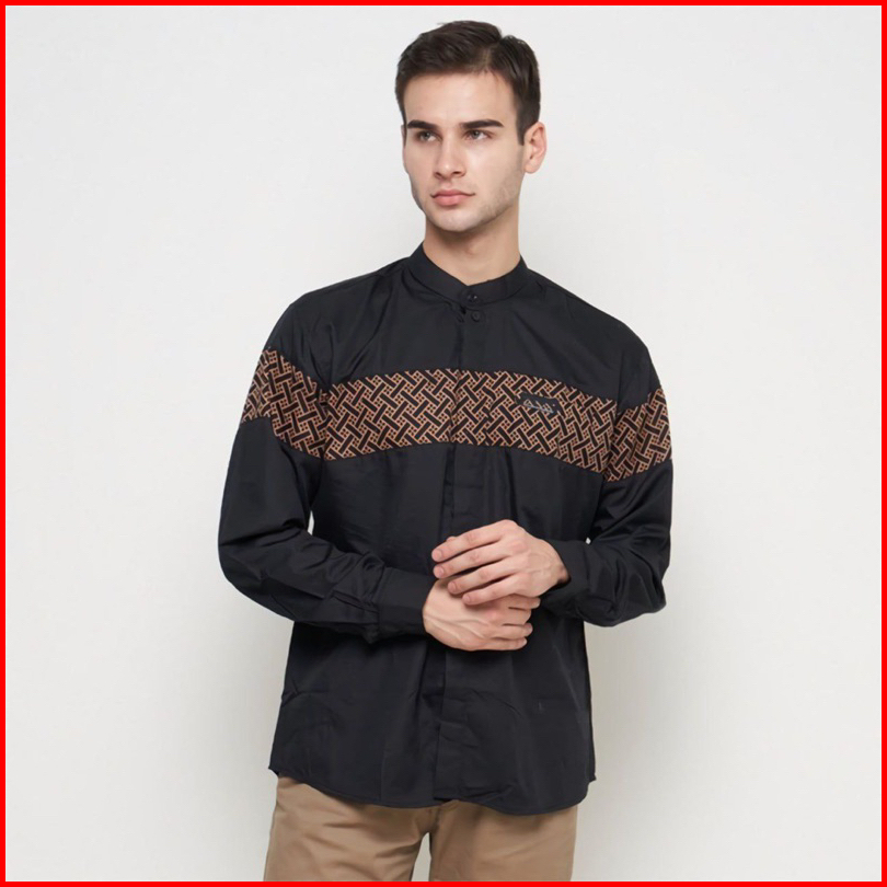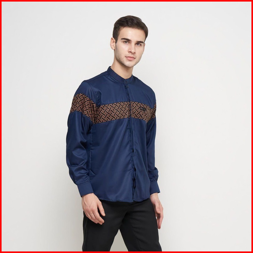 Baju Koko Pria Dewasa Lengan Panjang Motif Kobata Qynang Kombinasi Batik Terbaru