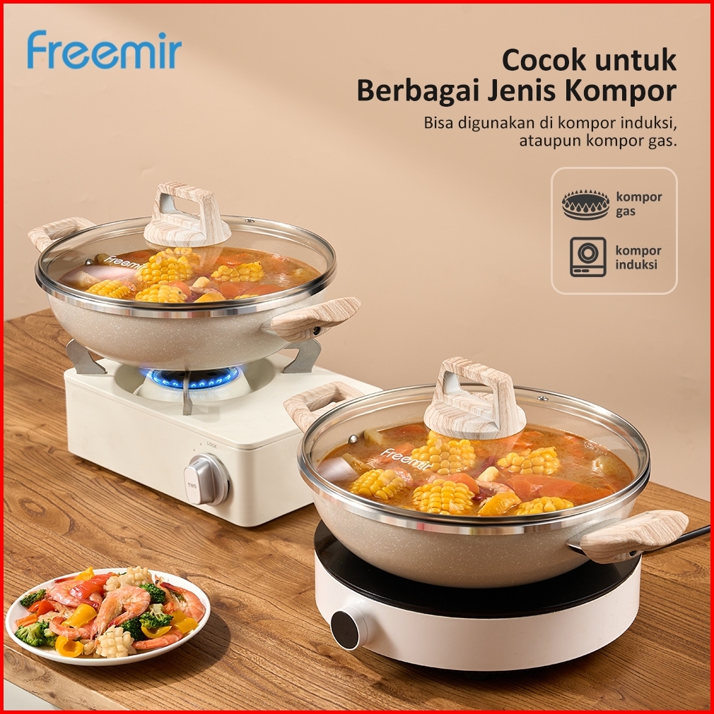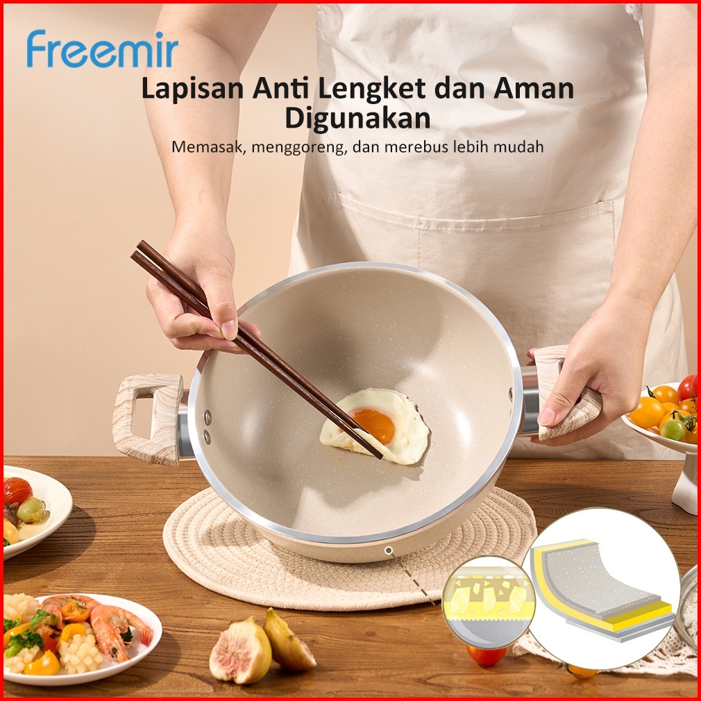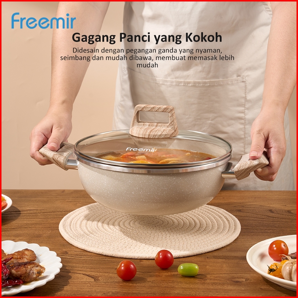 Best Deals Freemir Wajan Panci 24 Cm Tinggi 10 Cm Double Bottom Granit Panci Anti Lengket Serbaguna
