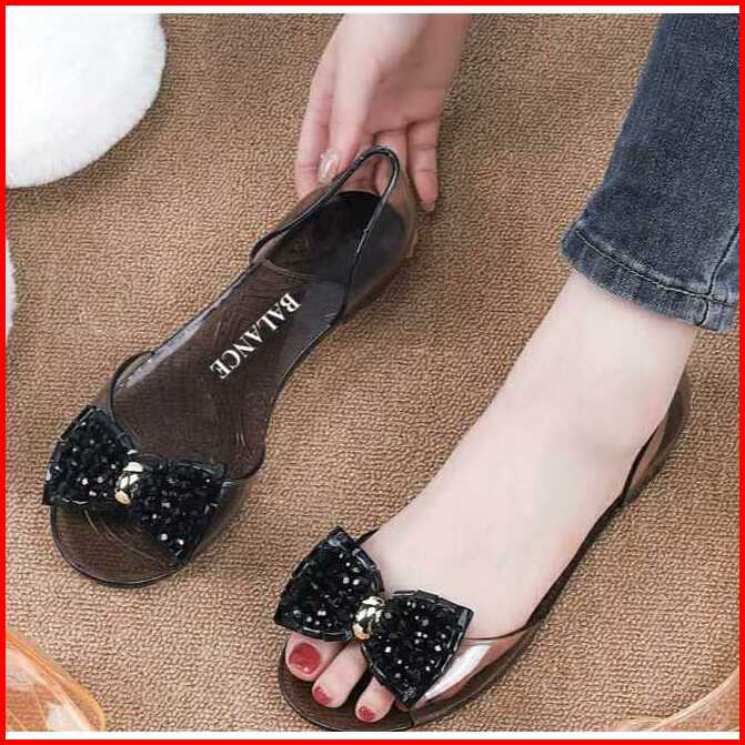 Sandal Flatshoes Wanita Transparan Variasi Pita 186-c 36-39 Sandal Wanita Import