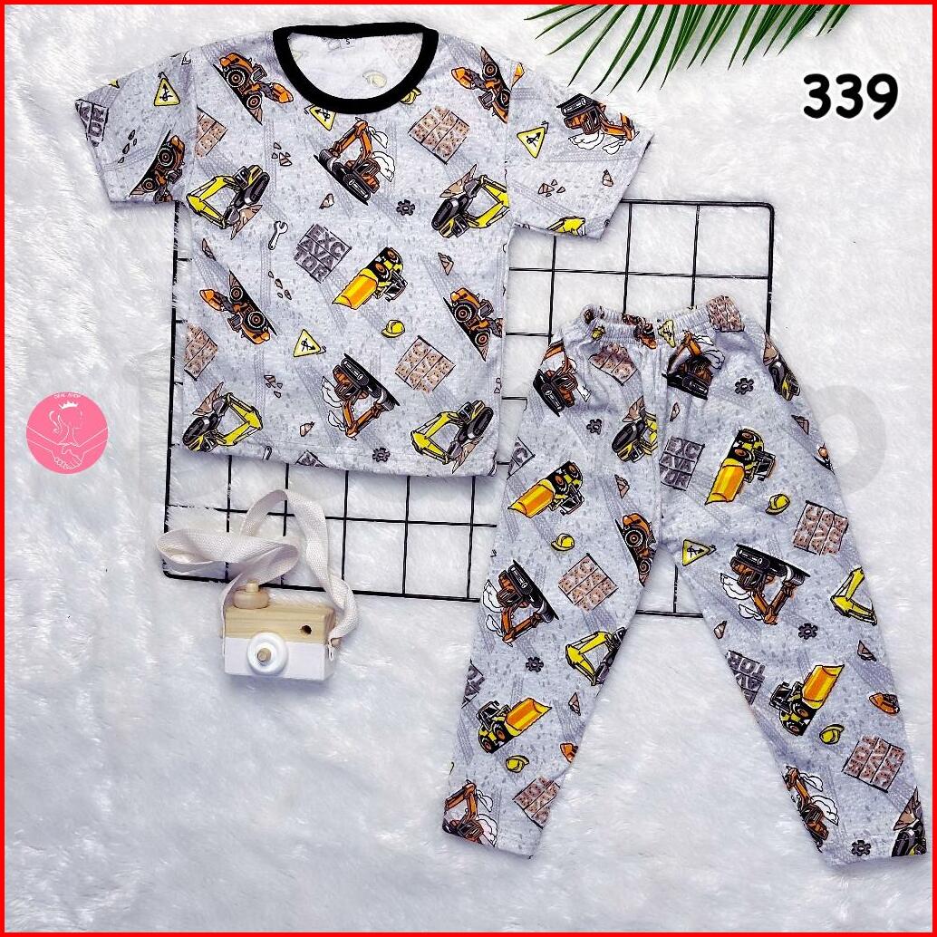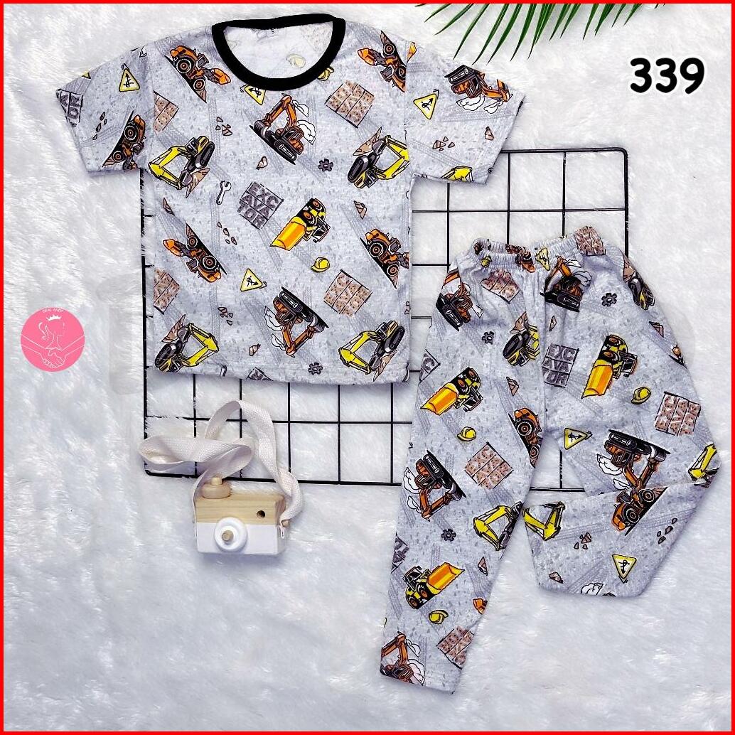 Dealshop Setelan Baju Tidur Anak Lengan Pendek Untuk 1-10 Tahun Full Printing Motif Excavator Beko Set Piyama Anak Laki