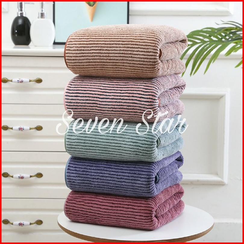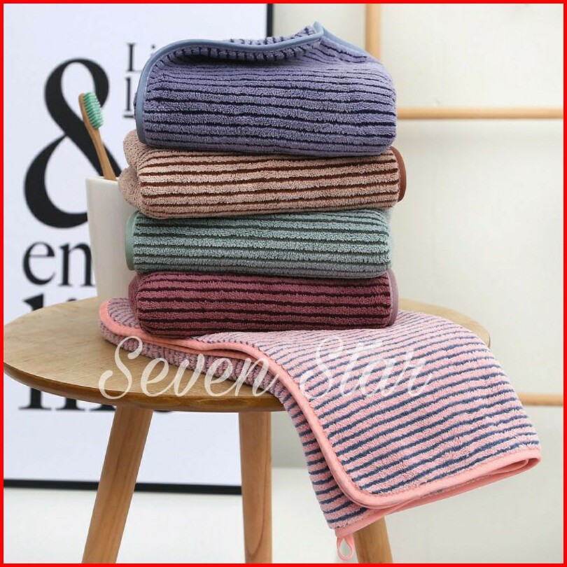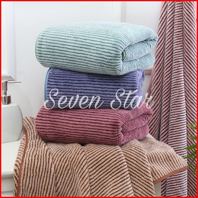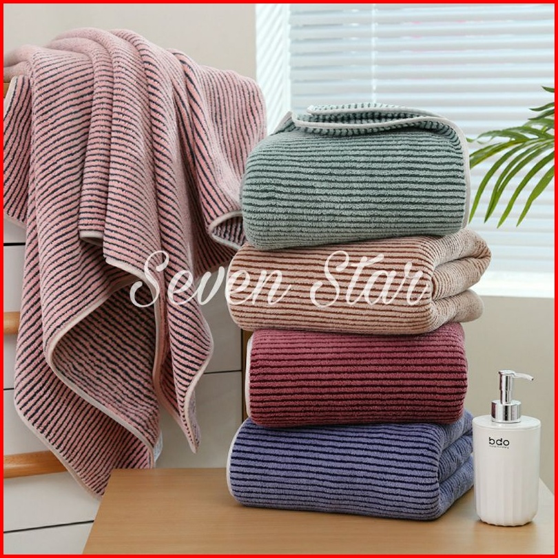 Handuk Mandi Dewasa Quick Dry Microfiber Bulu 70x140 Garis Tipis Super Serap Air Premium Lembut Keramas