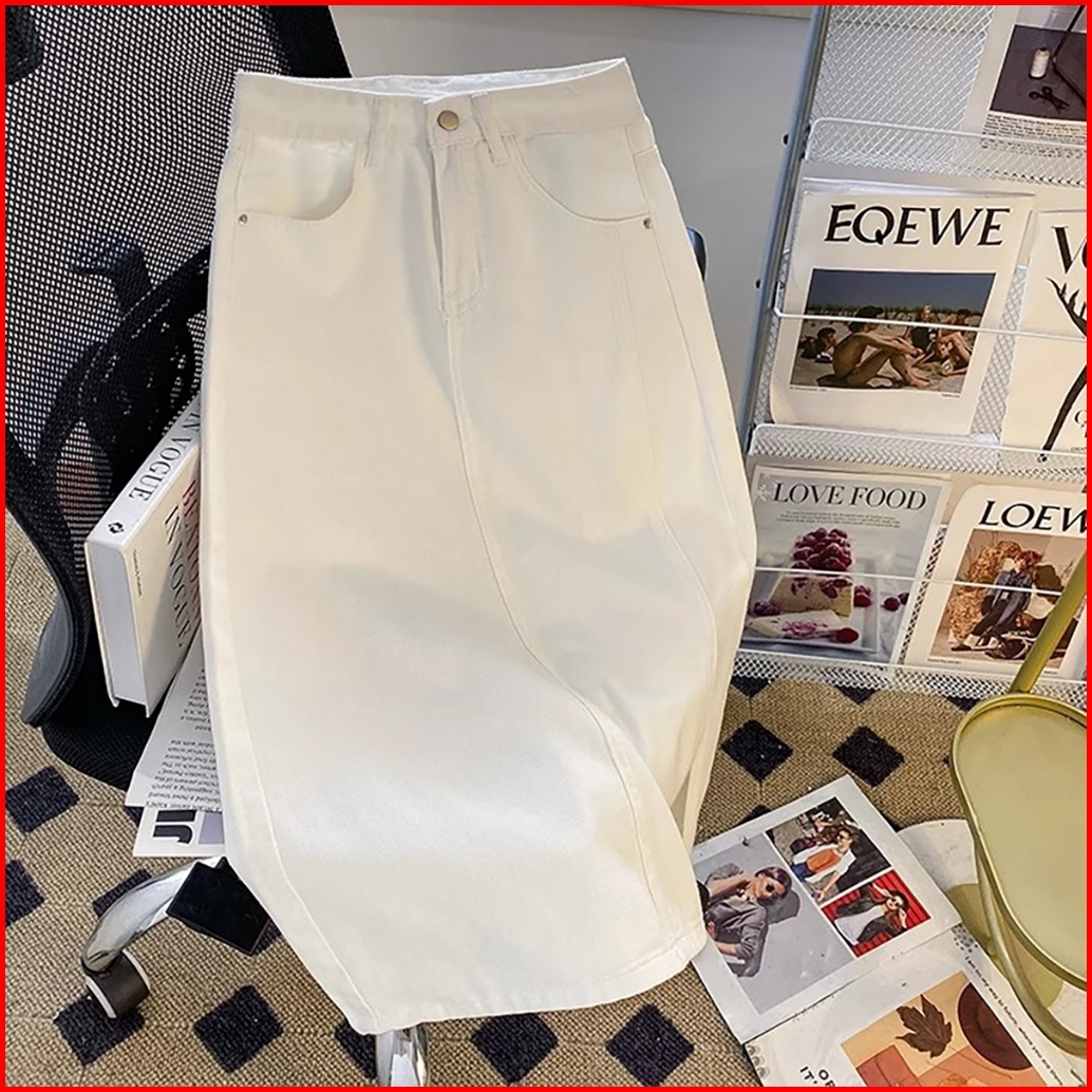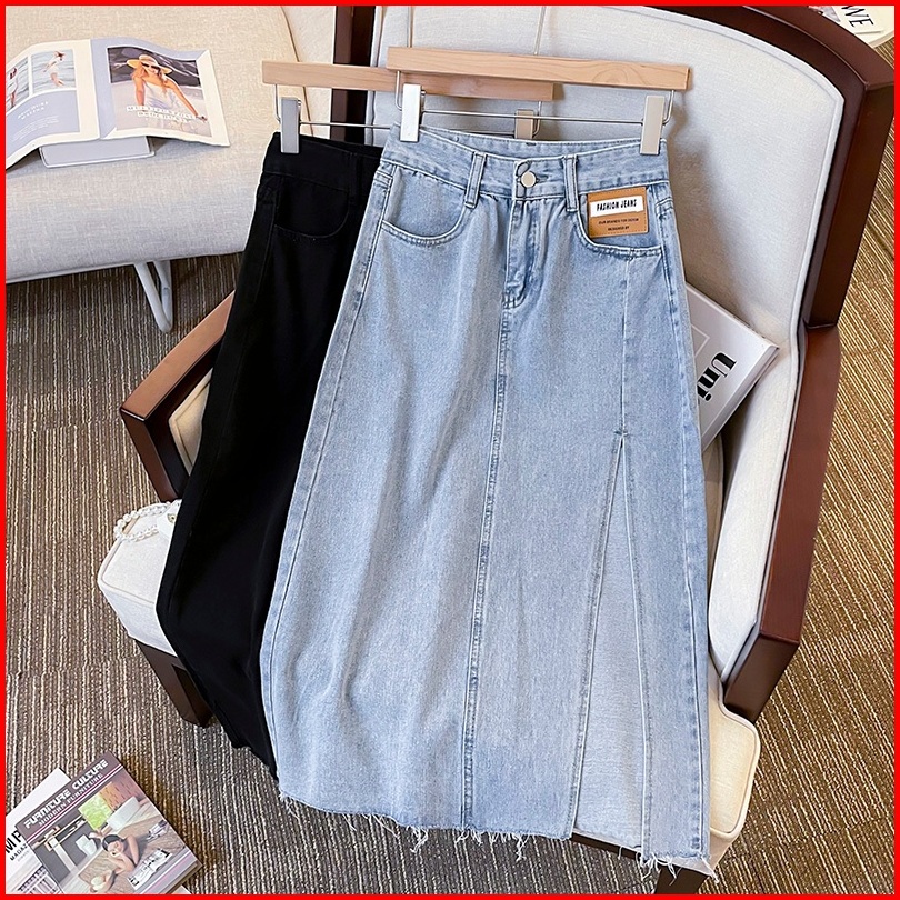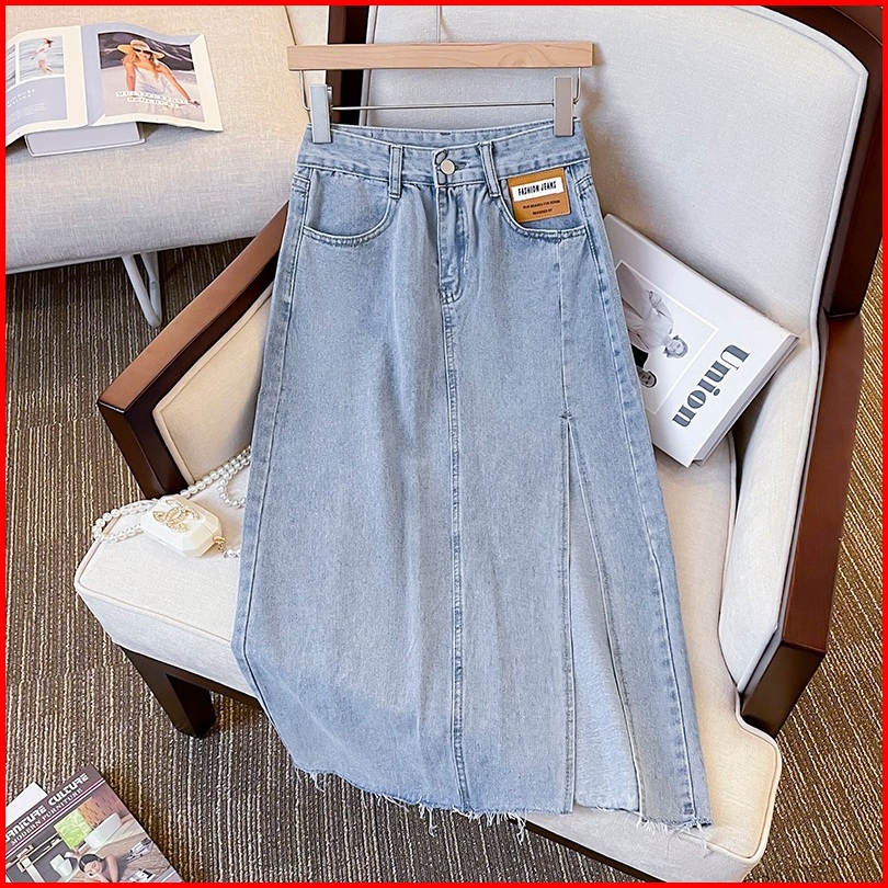 Kekinian.factory Ready Stok Rok Jeans Split Gaya Korean Style Rok Celah Samping Panjang Denim A Line Skirt Jumbo Kekinia