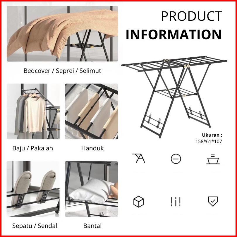 Esok Jemuran Baju Portable Bisa Di Lipat Korean Indoor Clothes Hanger Foldable - Varian