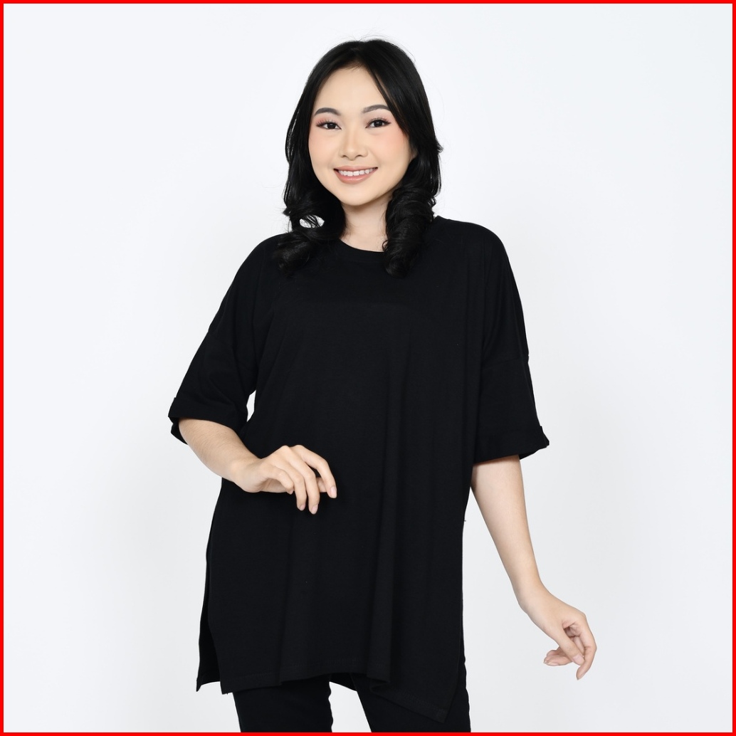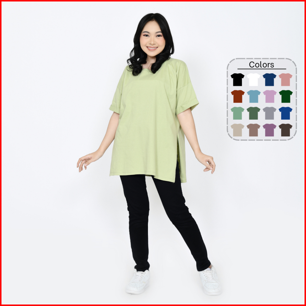 Oversize T-shirt With Slit Premium Cotton - Kaos Oversize Wanita