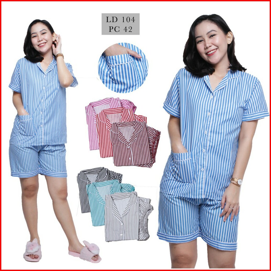 Jnv Piyama Hp Wanita Motif Salur - Baju Tidur Hotpants - Bahan Katun