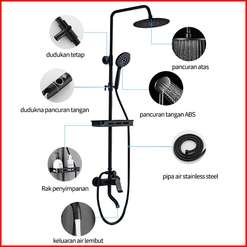 Spesial Esok Set Shower Mandi Full Set Dengan Kran Panas Dingin - Shower Silver - Shower Full Set - Shower Tiang Set Min