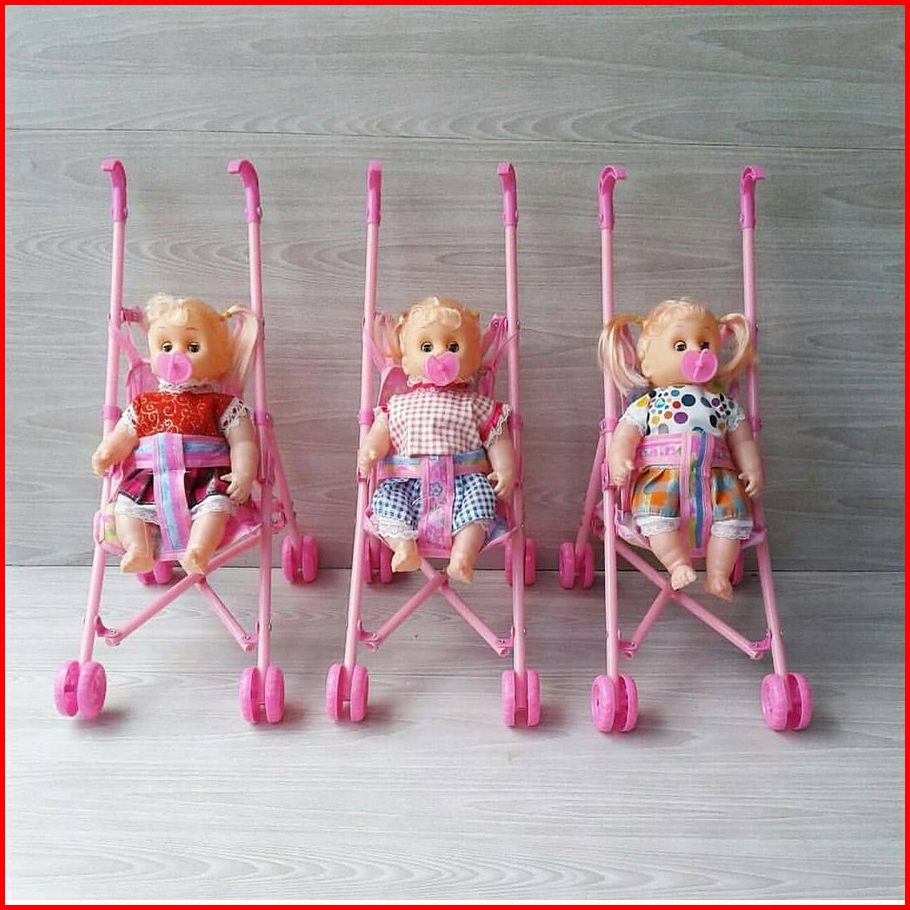 Mainan Anak Perempuan Boneka Bayi Empeng Nangis Stroller Boneka Bayi Nangis Stroller