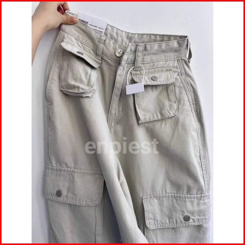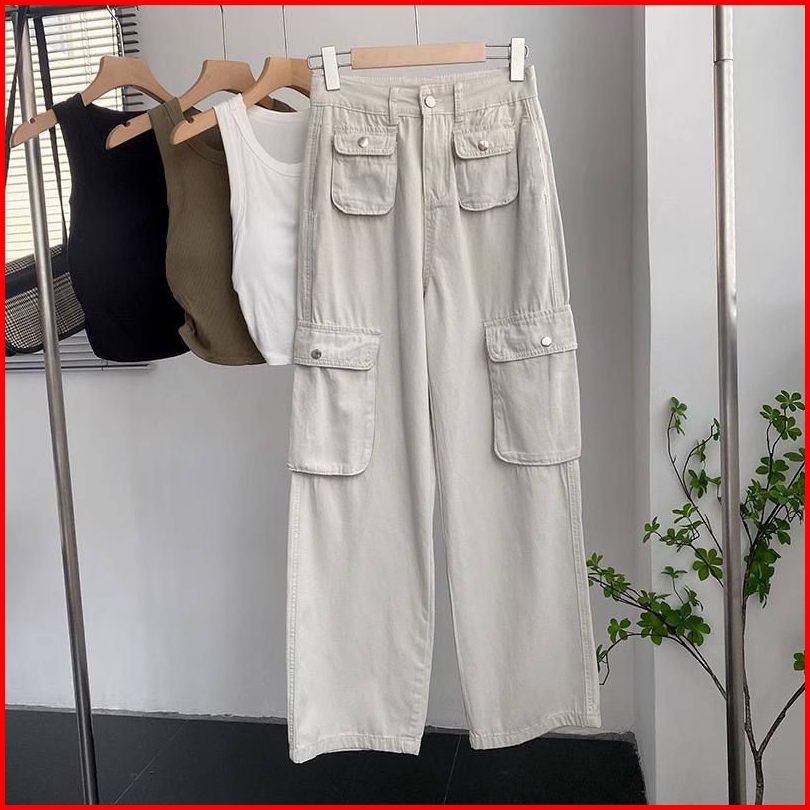 Cargo Jeans Wanita Highwaist Korea Style Pasir Putih