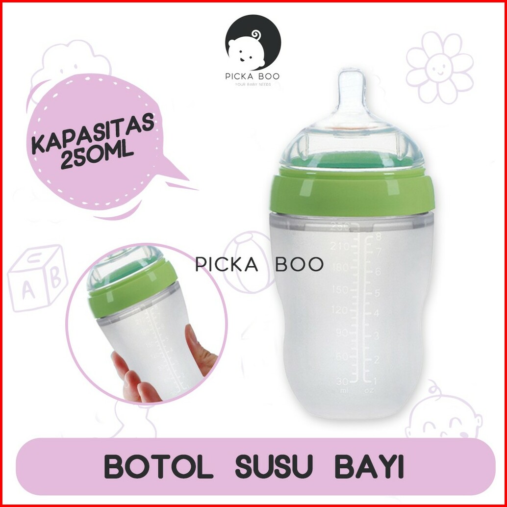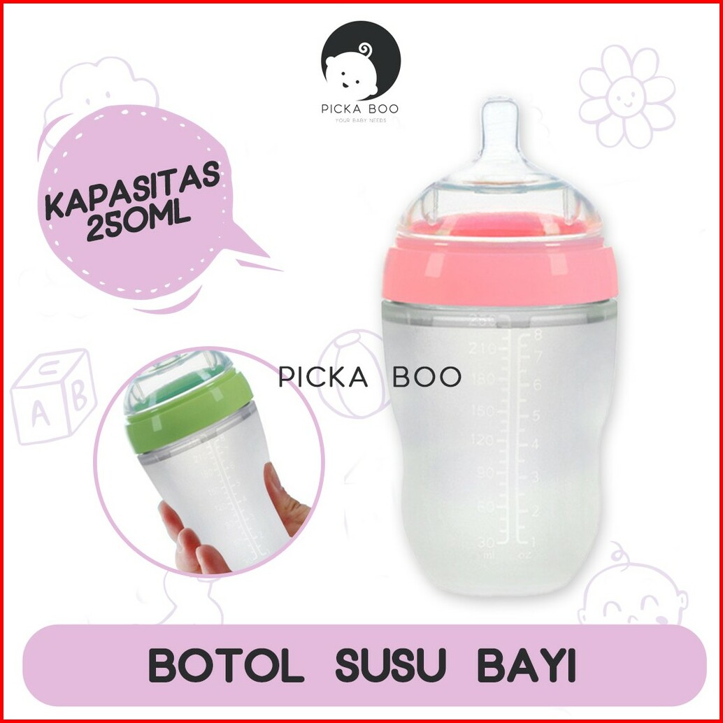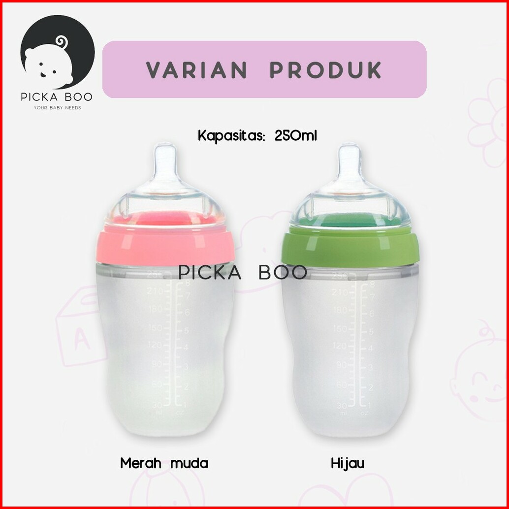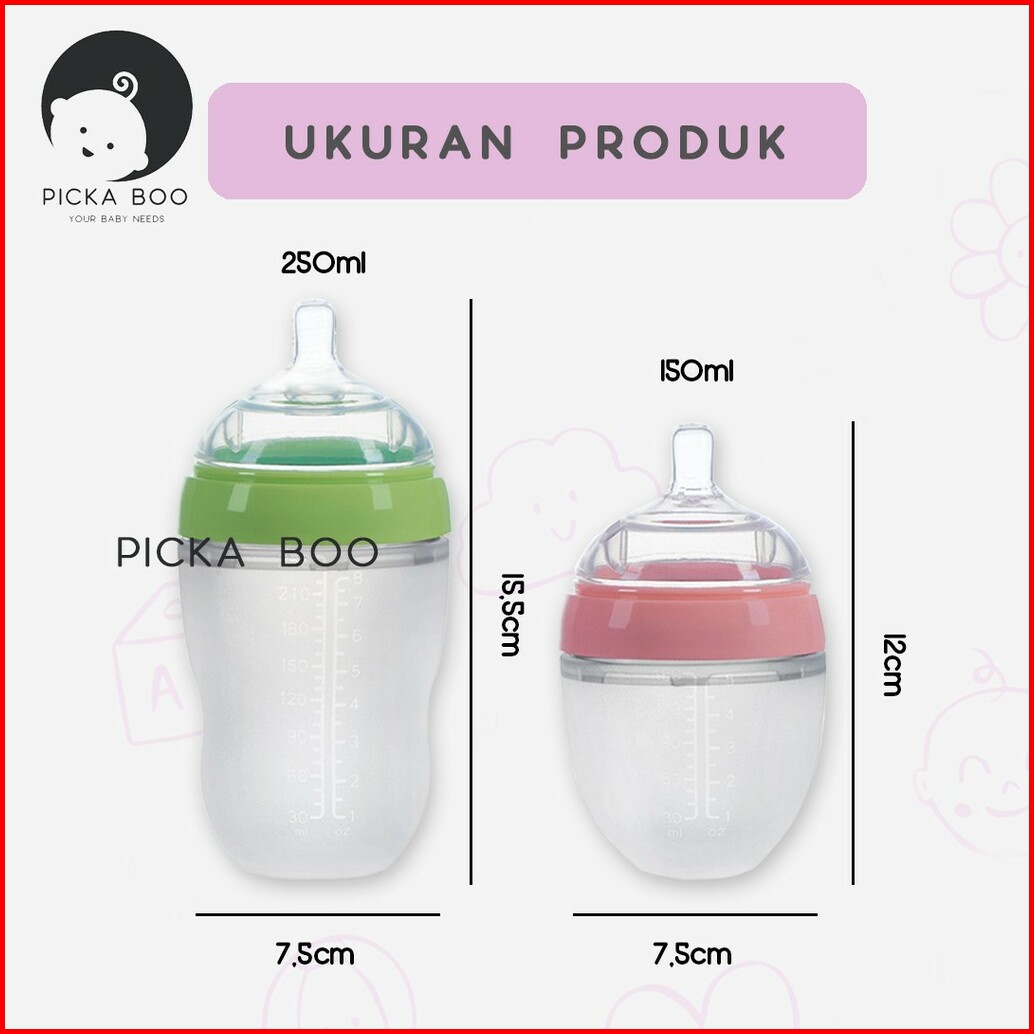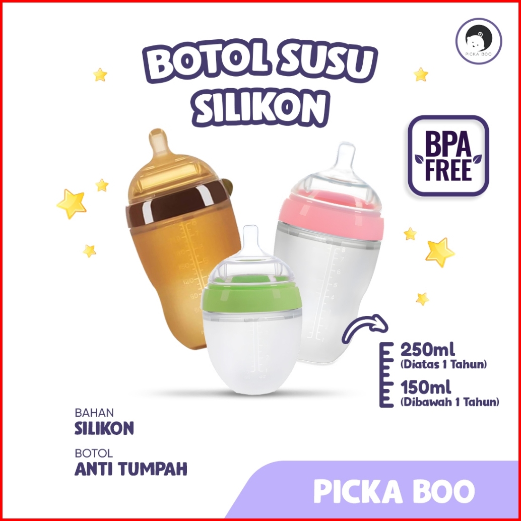 Picka Boo Premium Botol Dot Silikon 150ml 250ml Botol Susu Bayi Wide Neck Silicone Food Grade Tahan Panas Wideneck