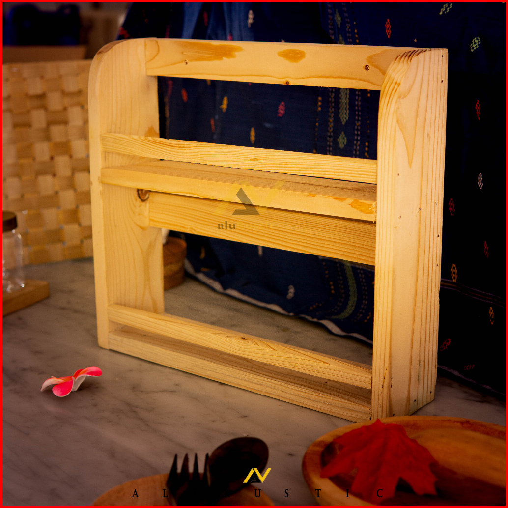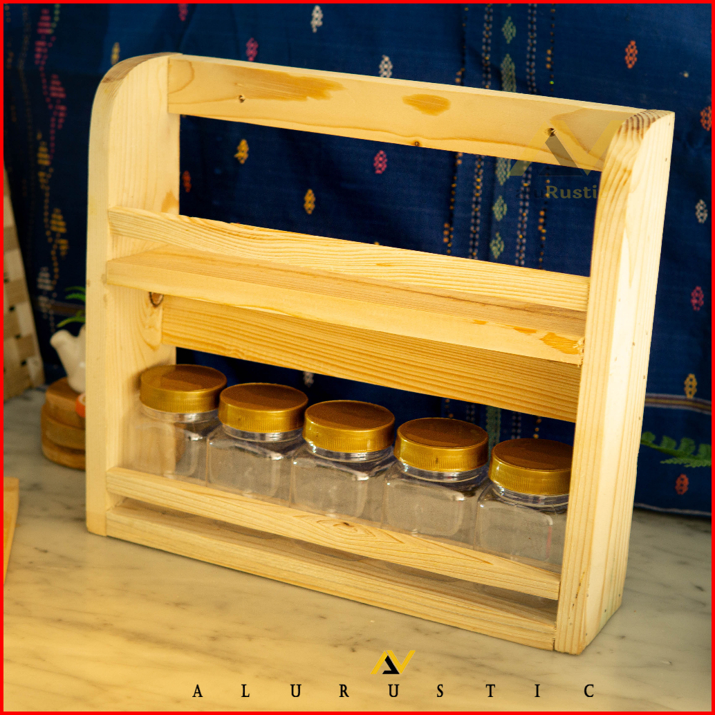 Tempat Bumbu Kayu 2 Tingkat 10 Toples Rak Kayu 2 Susun Rak Gantung Tempat Bumbu Serbaguna Perabot