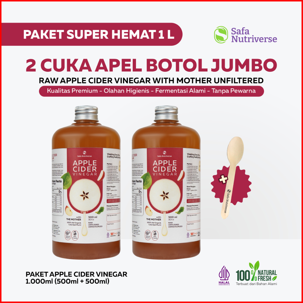 Cuka Apel Organik With Mother Jumbo 1000 Ml Dengan Inang Cuka