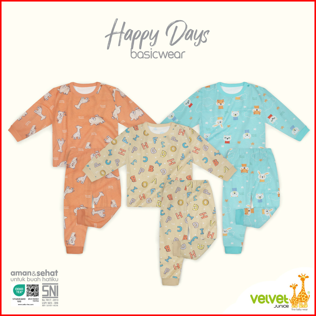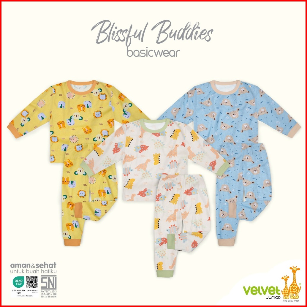 Velvet Junior Setelan Baju Anak Kancing Pundak Celana Panjang - Blissful Buddies Happy Days Endearing