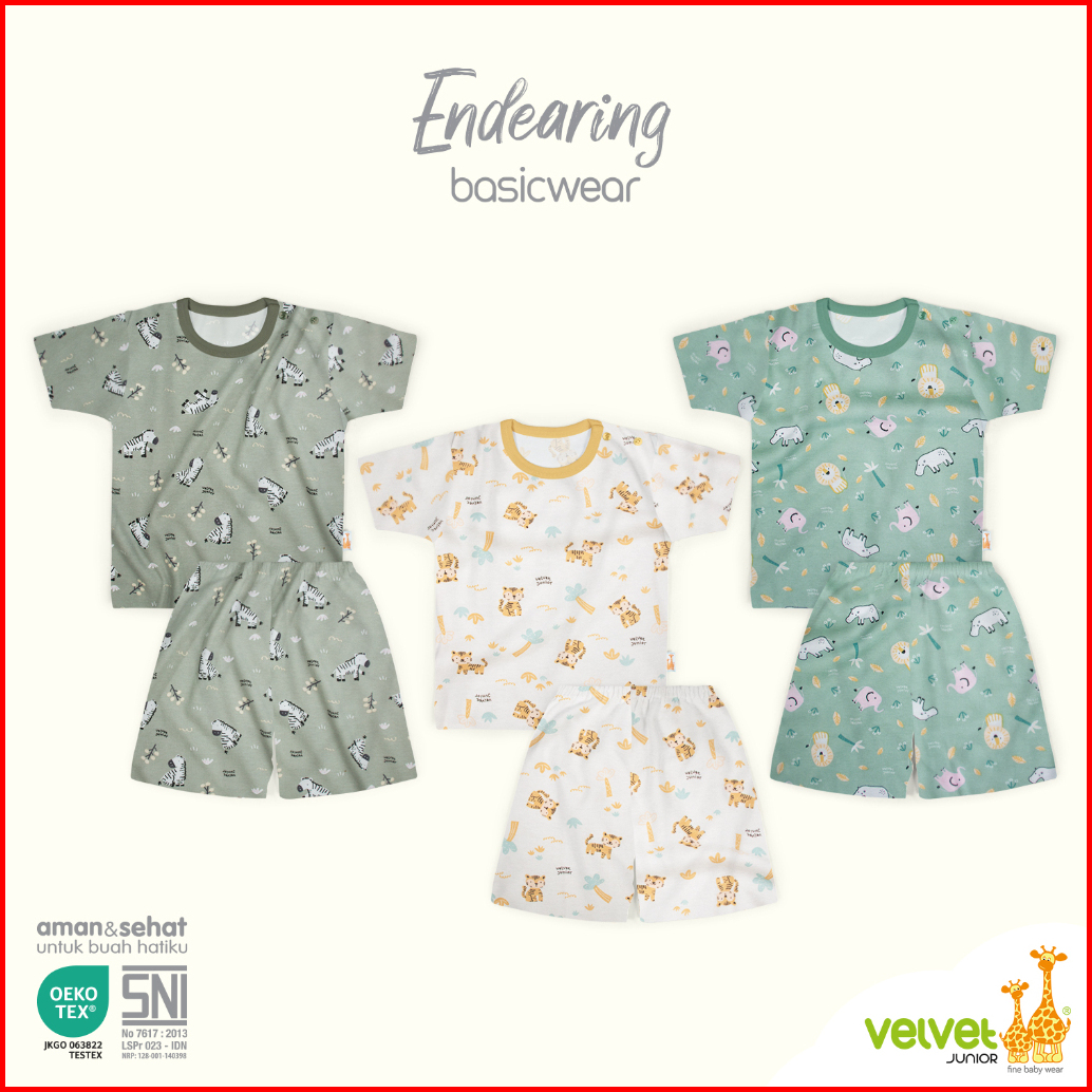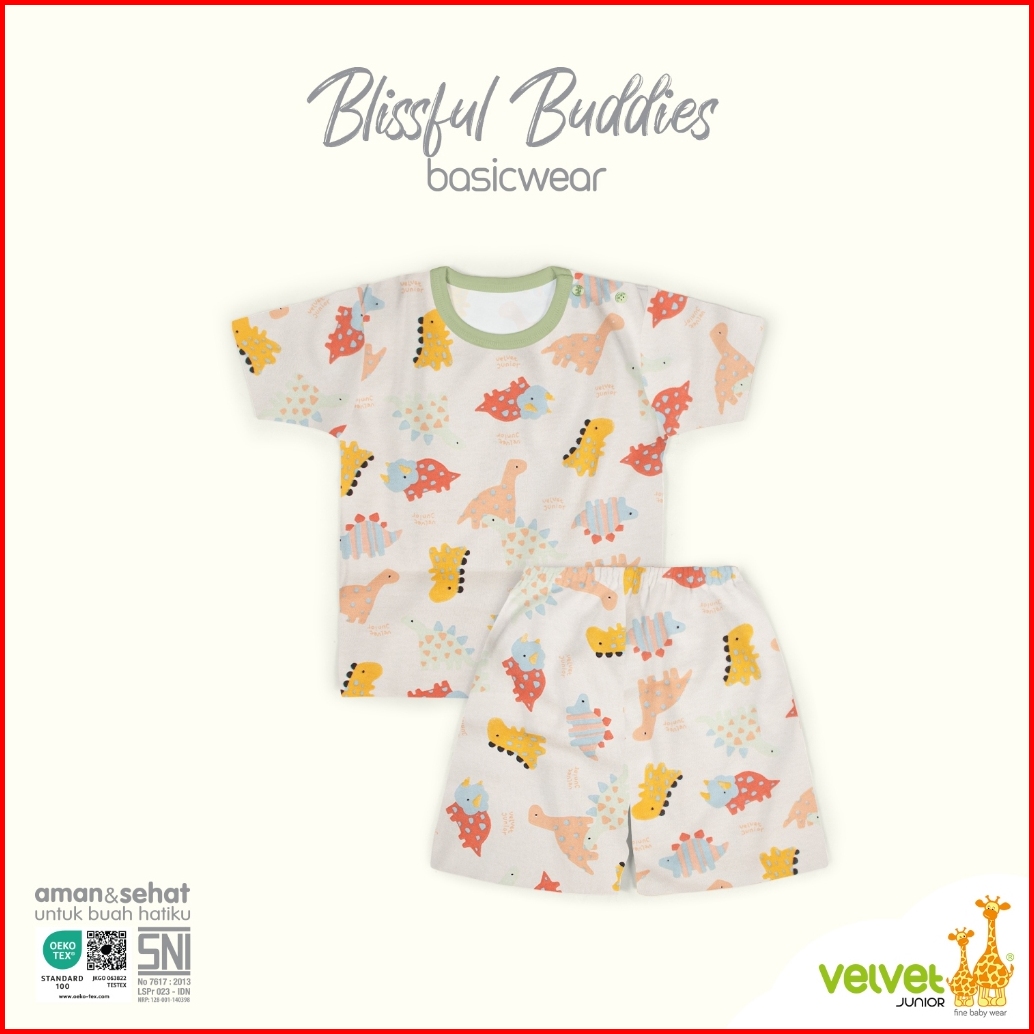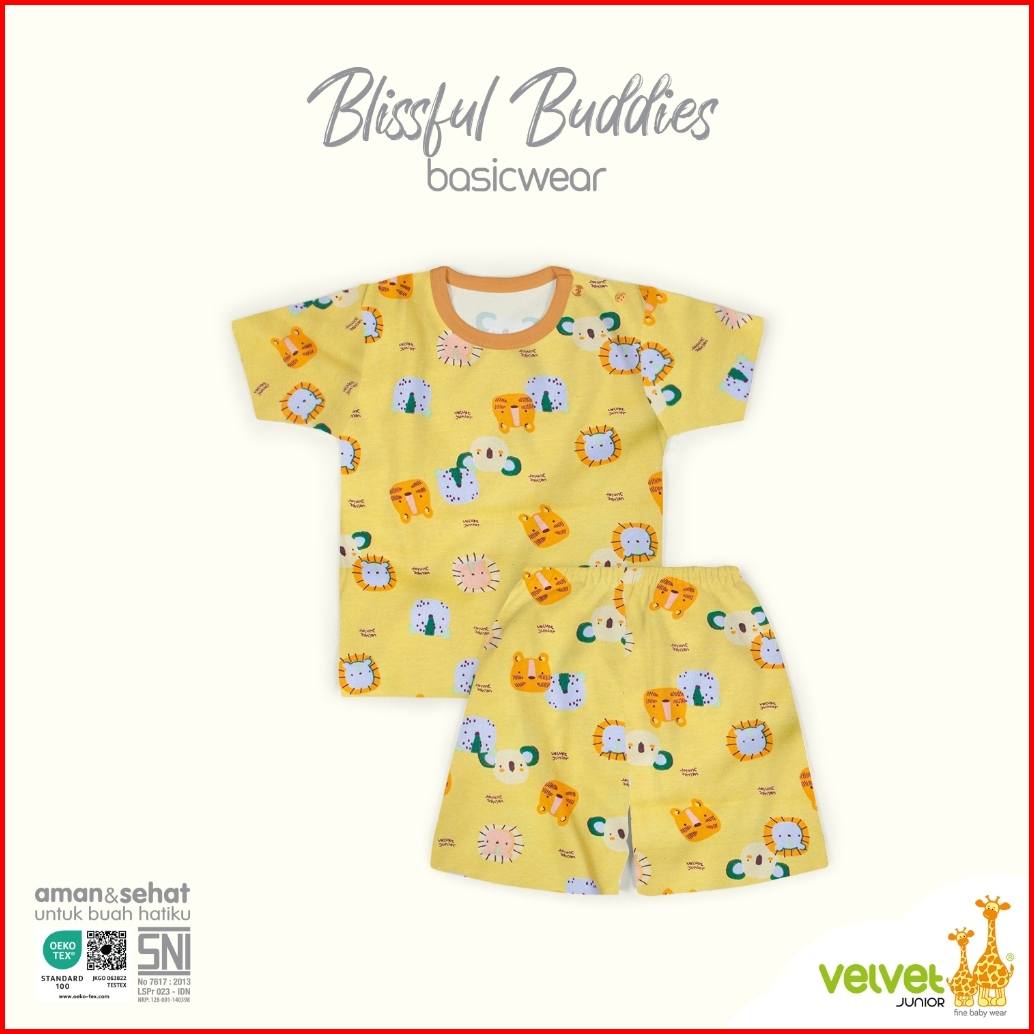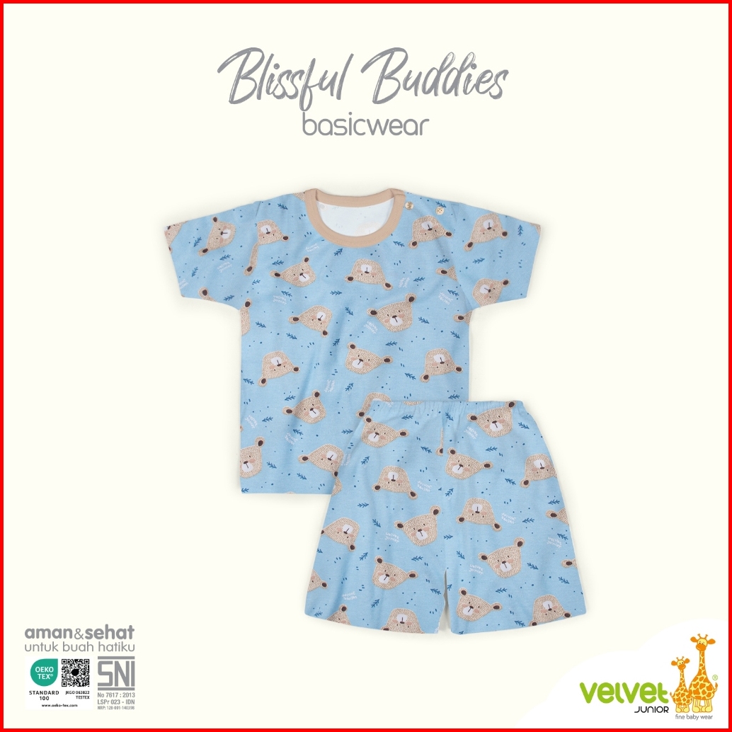 Velvet Junior Setelan Baju Anak Kancing Pundak Pendek Celana Pendek - Basicwear Blissful Buddies Happy Days Endearing