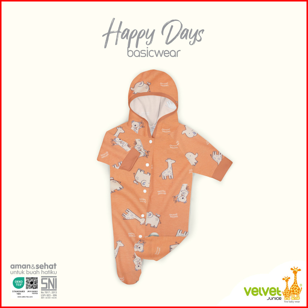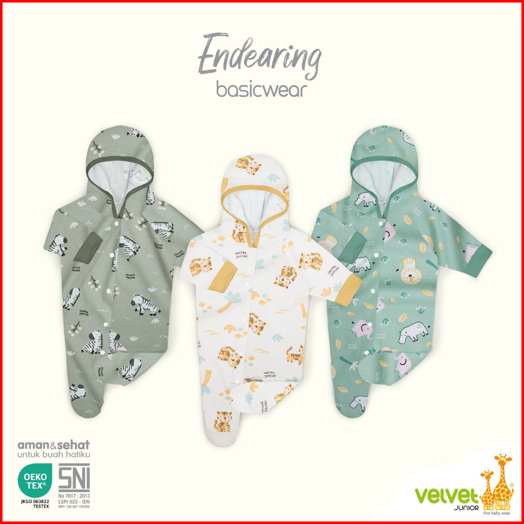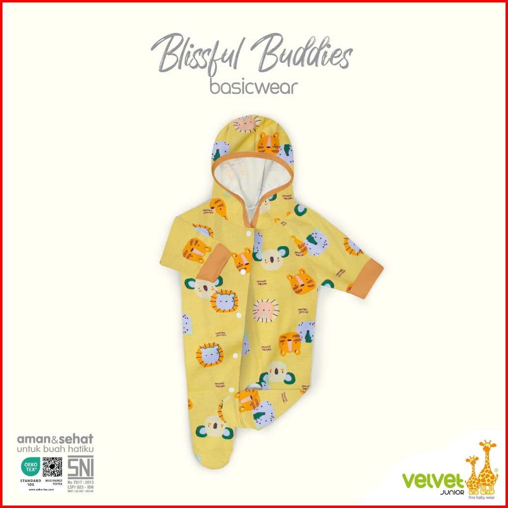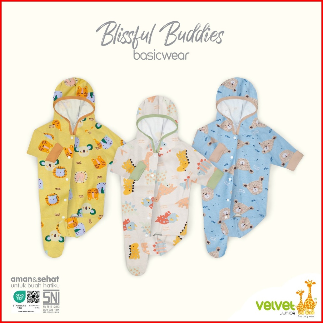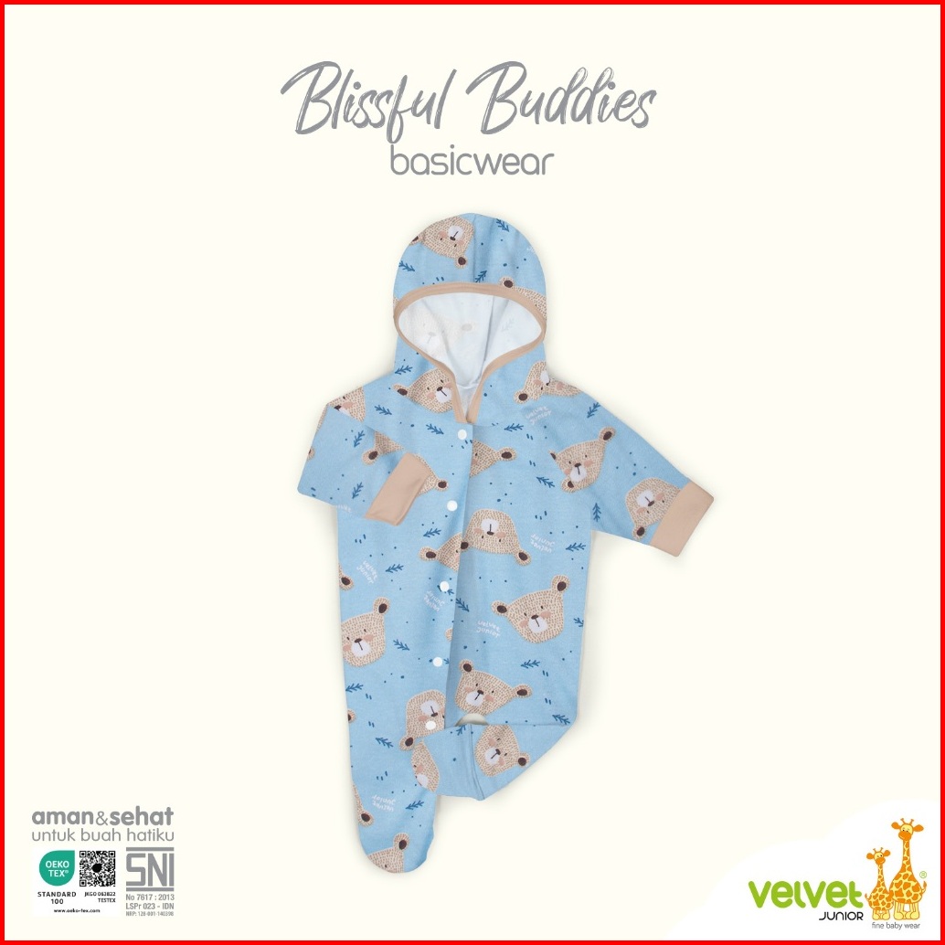 Velvet Junior Jumper Bayi Sleepsuit Topi Tutup Kaki - Basicwear Blissful Buddies Happy Days Endearing
