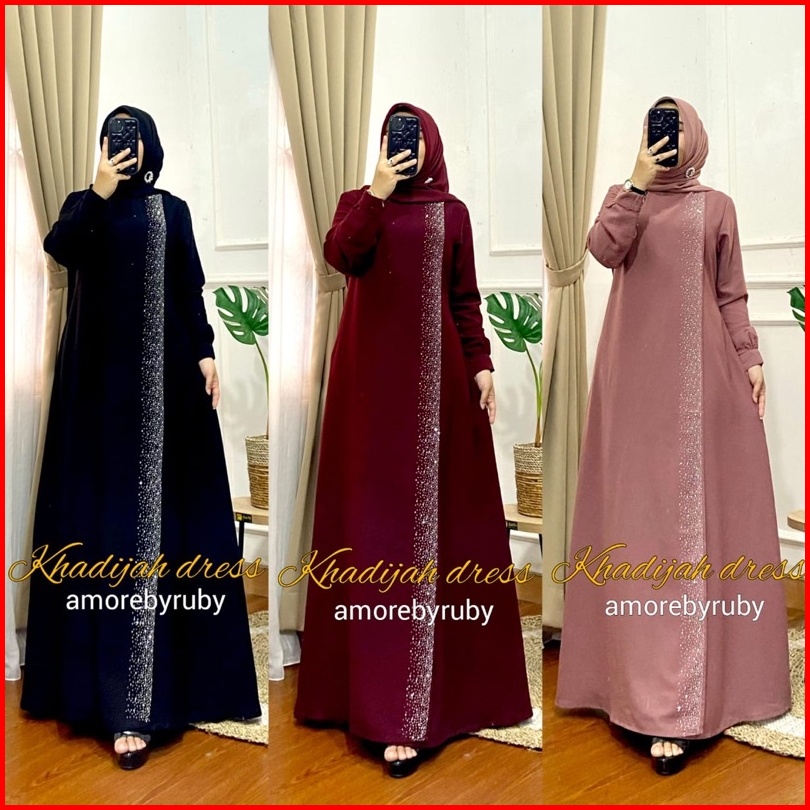Khadijah Dress Amore By Ruby Gamis Polos Manik Elegan