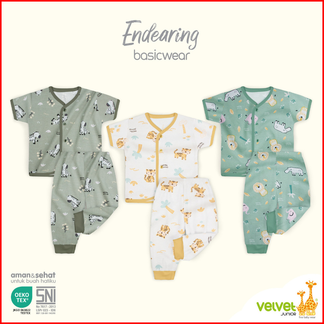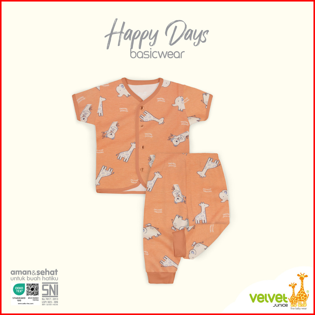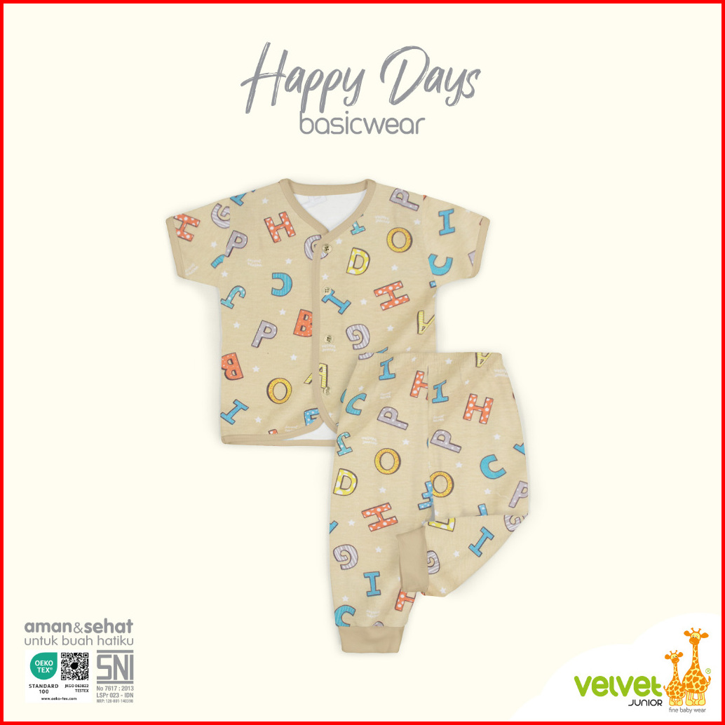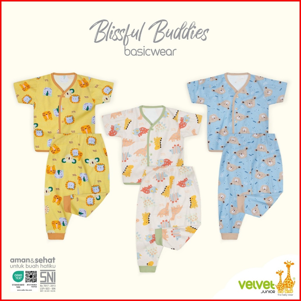 Velvet Junior Baju Anak Kancing Tengah Pendek Celana Panjang - Basicwear Blissful Buddies Happy Days Endearing