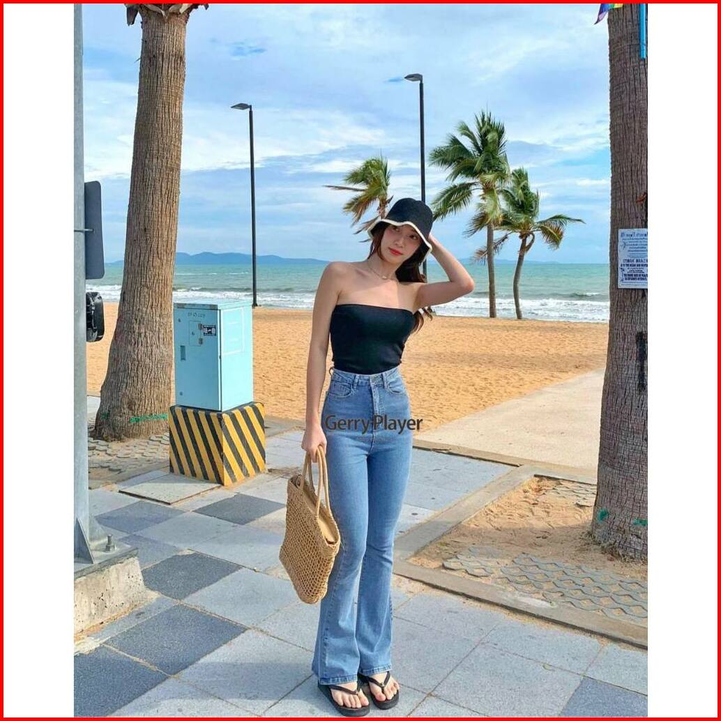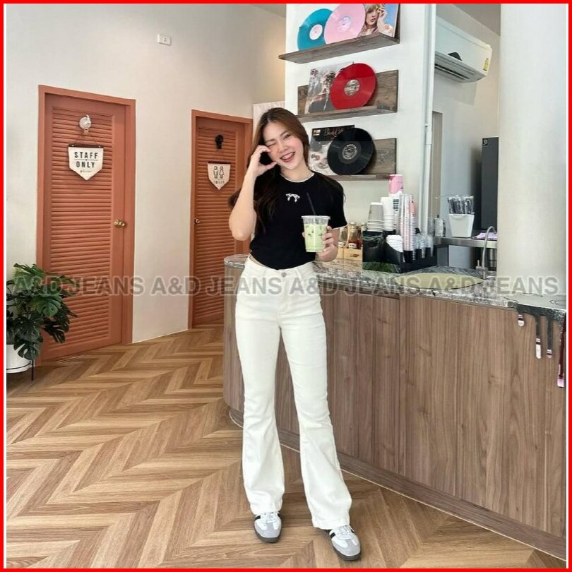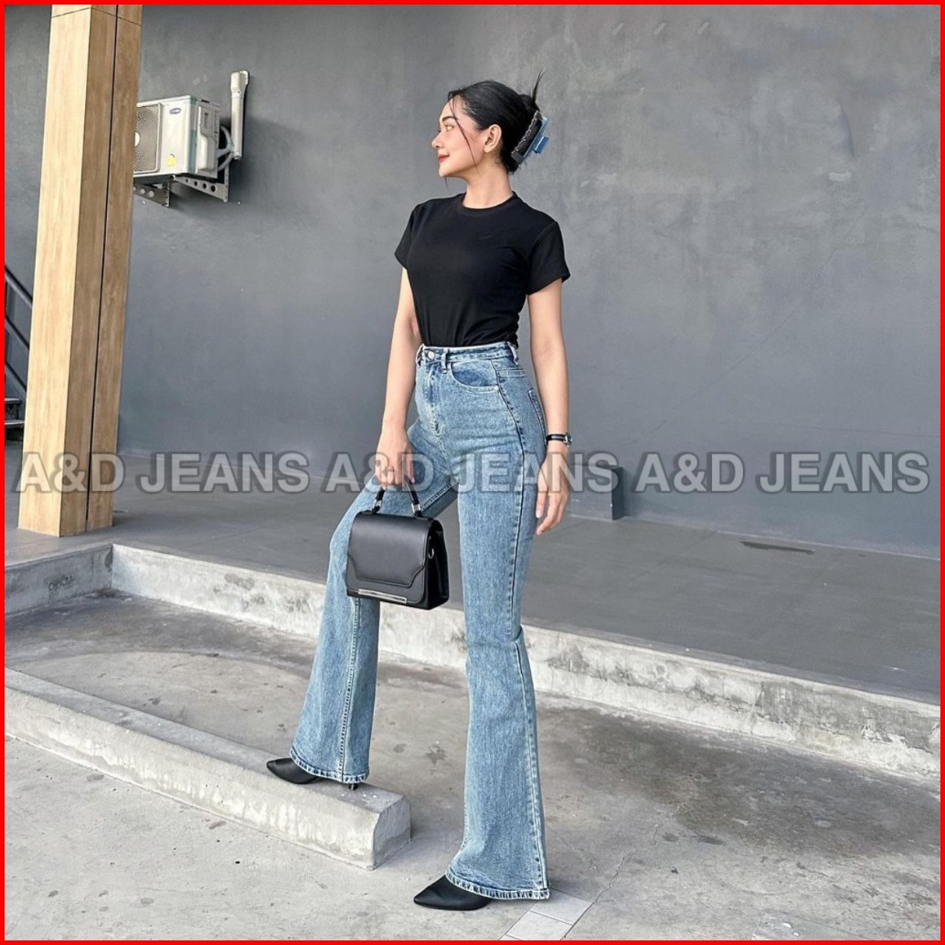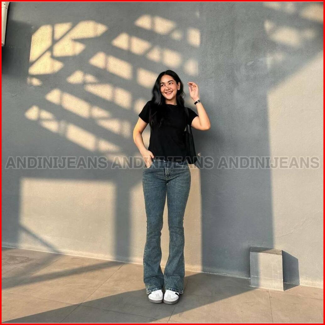 Korea Cutbray Jeans Highwaist Celana Jeans Wanita Kekinian Seksi Jeans Stretch Melar