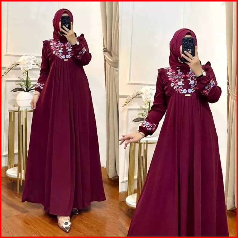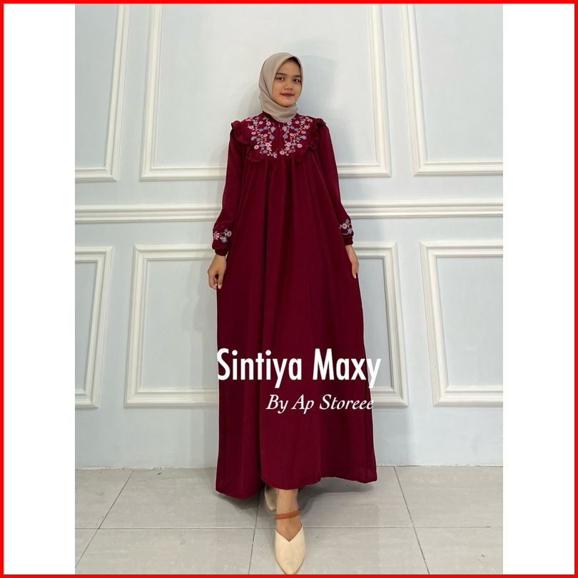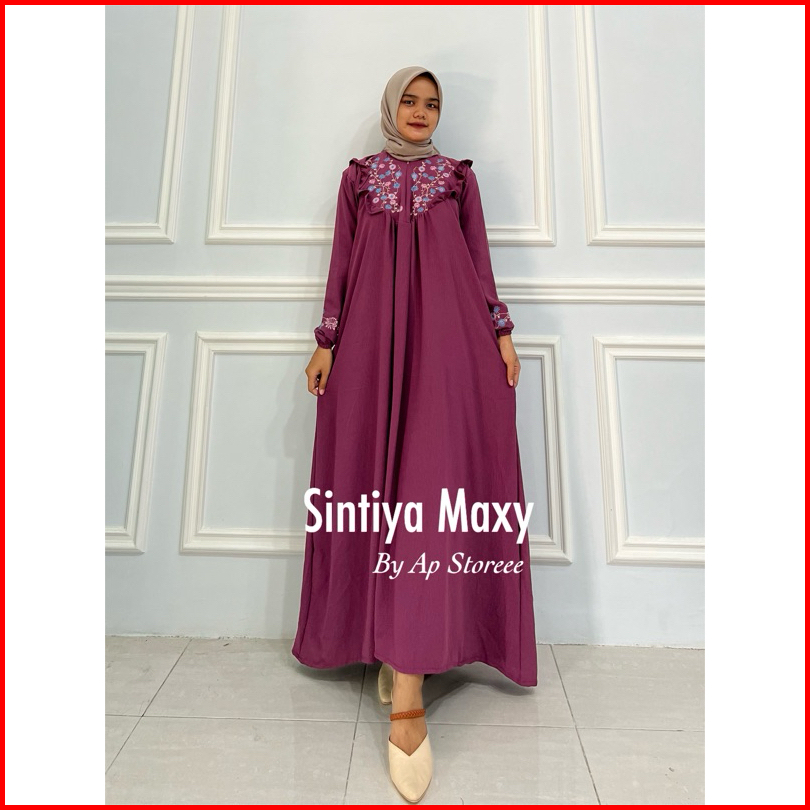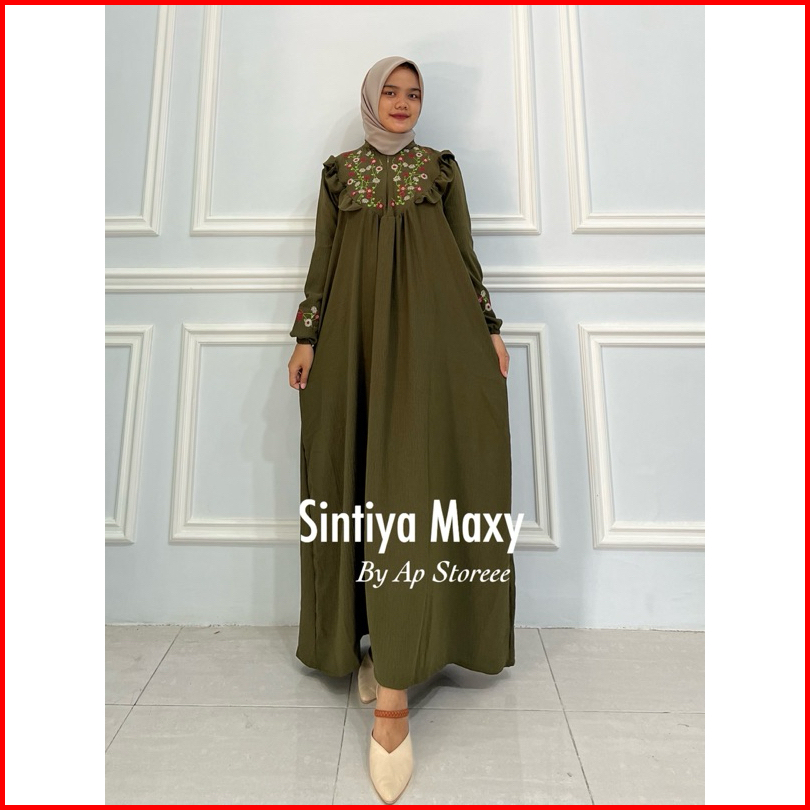 Sintiya Maxy Dress L Ld 110 Xxl Ld 130 Cringkel Airflow Gamis Bordir Cantik Asli