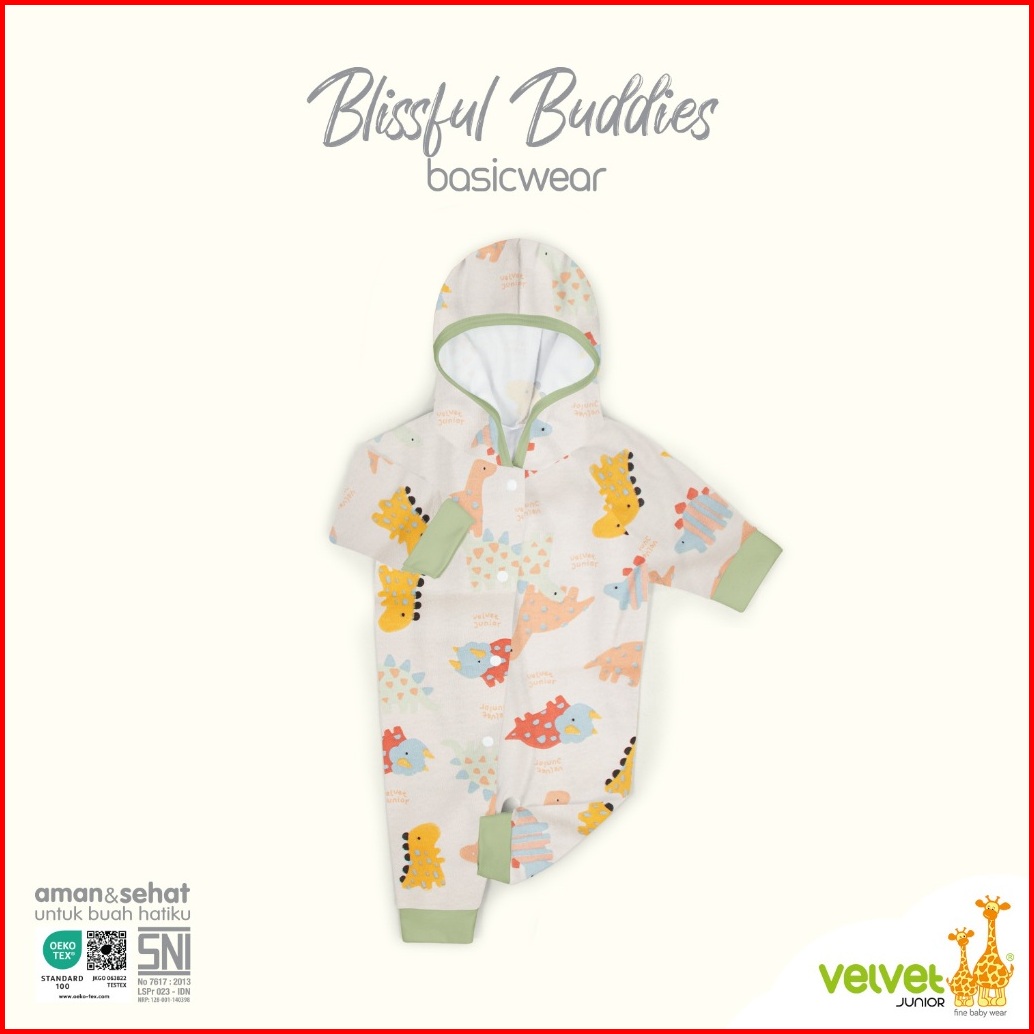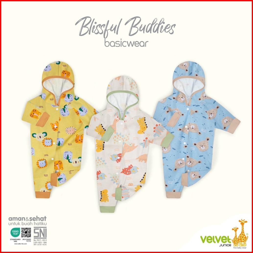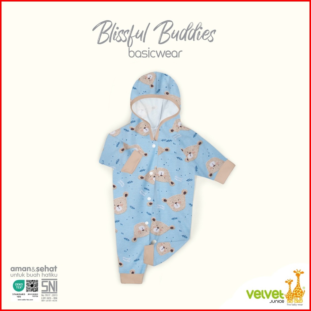 Velvet Junior Jumper Bayi Sleepsuit Topi Buka Kaki - Basicwear Blissful Buddies Happy Days Endearing
