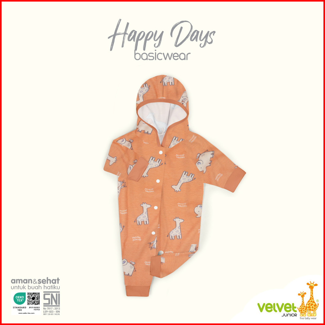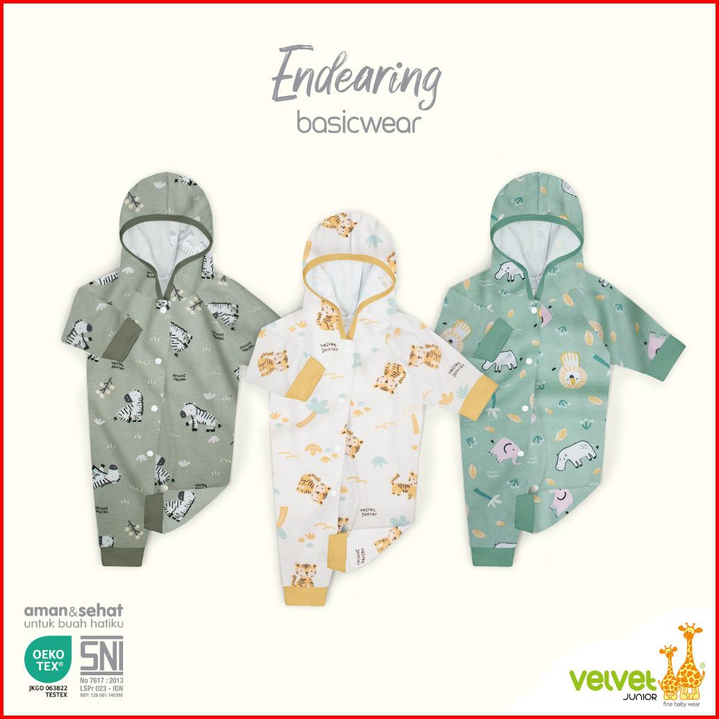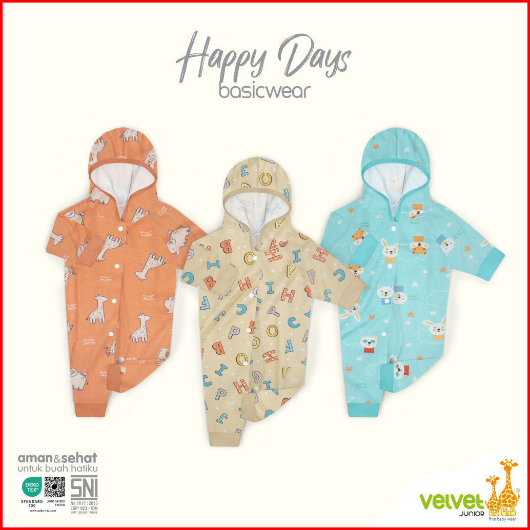 Velvet Junior Jumper Bayi Sleepsuit Topi Buka Kaki - Basicwear Blissful Buddies Happy Days Endearing