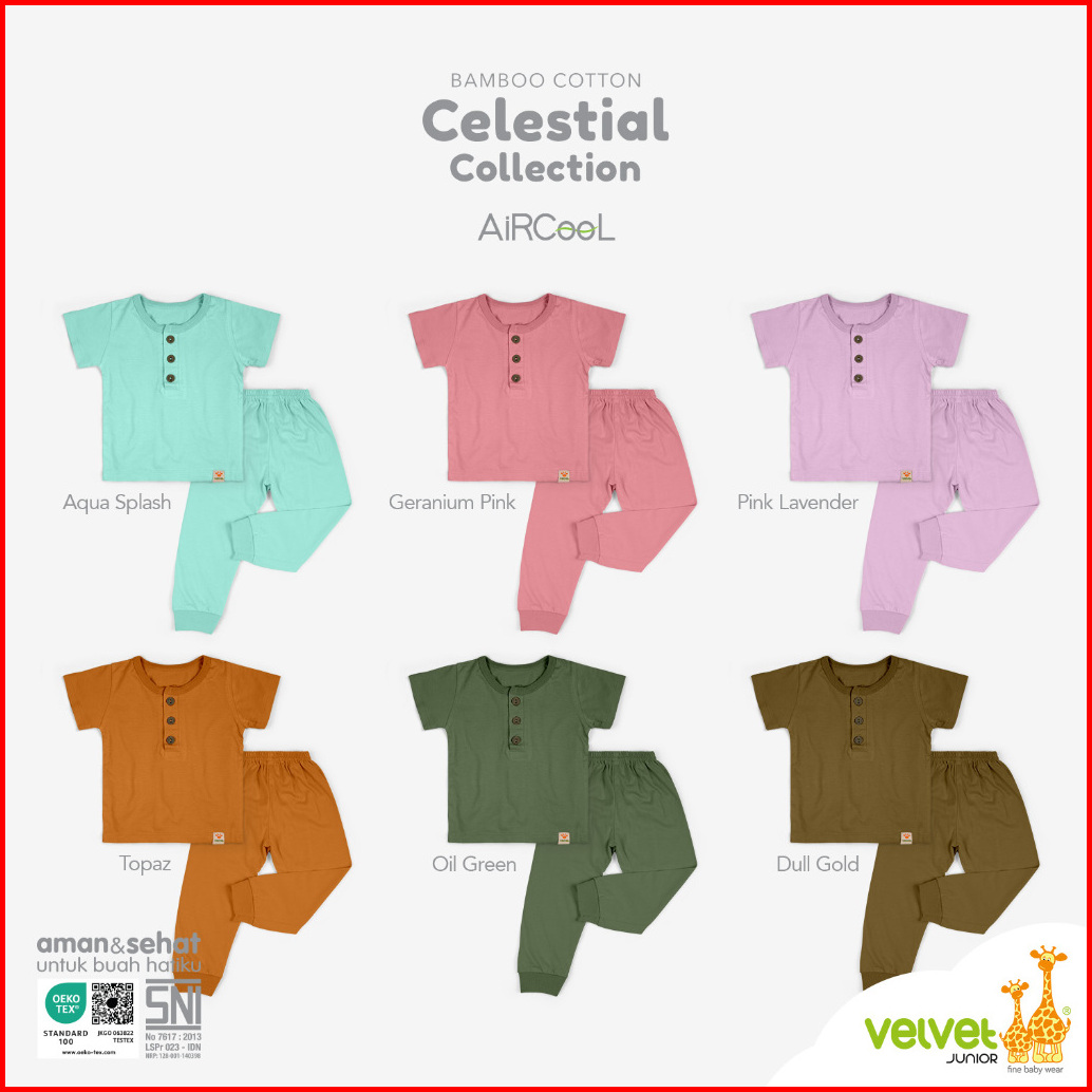 Velvet Junior Piyama Bamboo Cotton Baju Anak Perempuan Kc Pendek Celana Panjang Celestial 8 Series