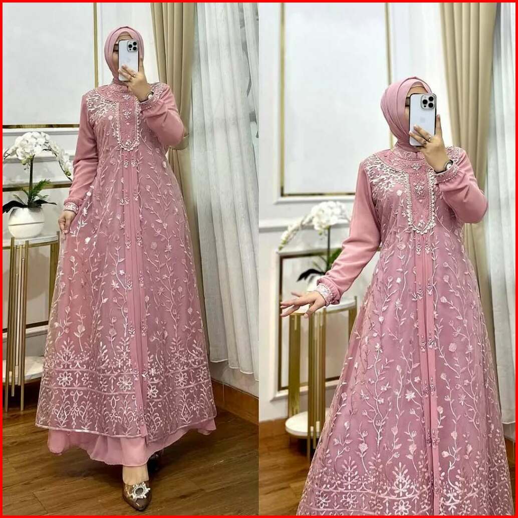 Gamis Viral 2025 Maudy Dress Ceruty Babydol Mix Brukat Aplikasi Mutiara Payet Swarovski Plus Renda