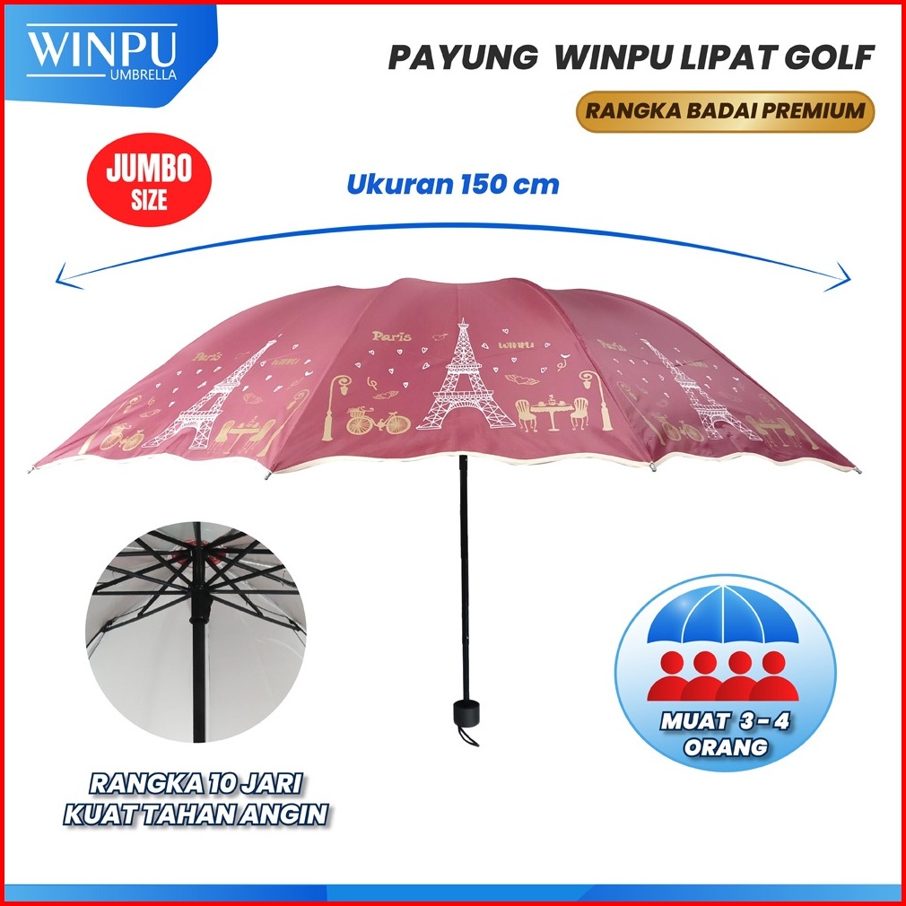 Winpu Payung Lipat Jumbo Premium 150 Cm Murah Motif Paris