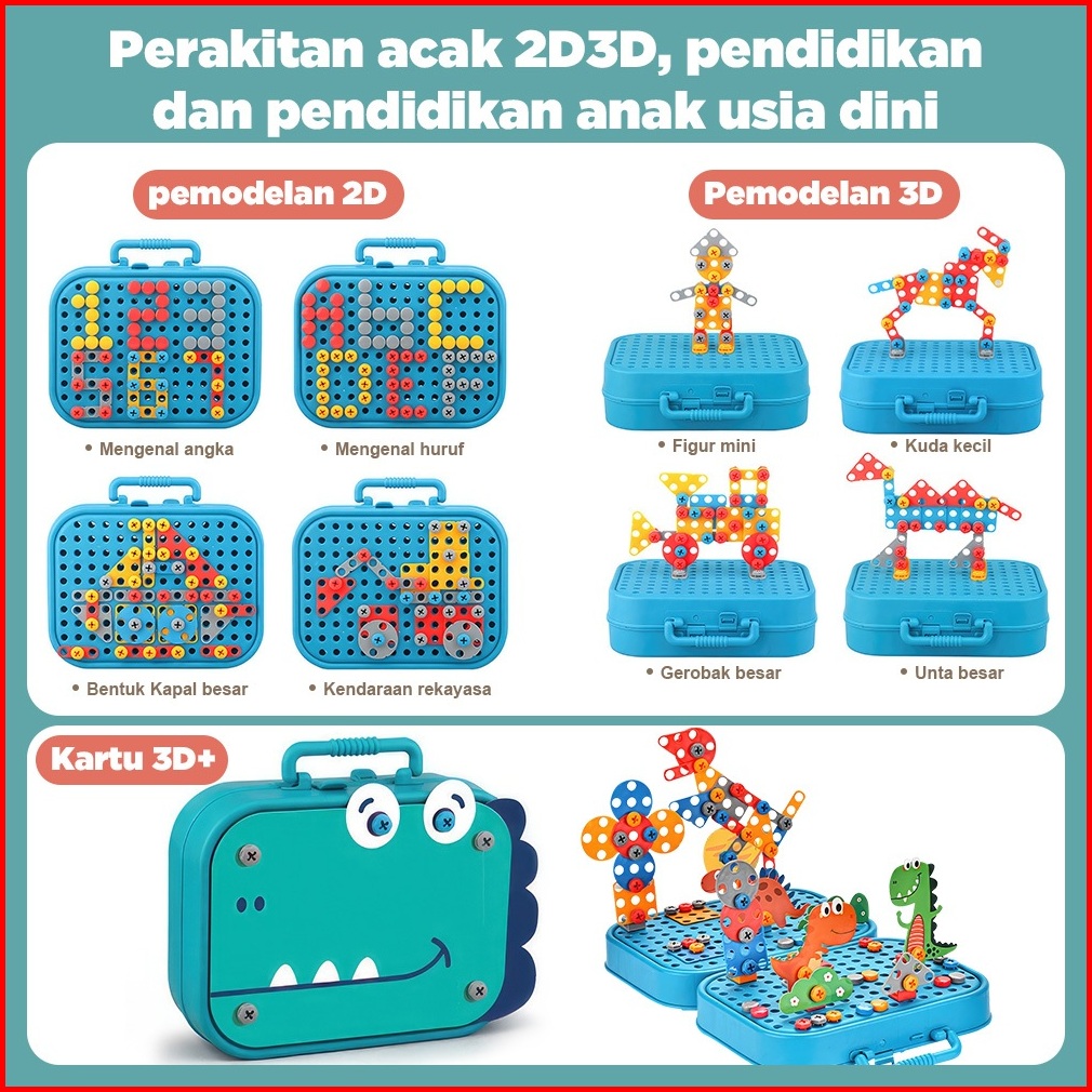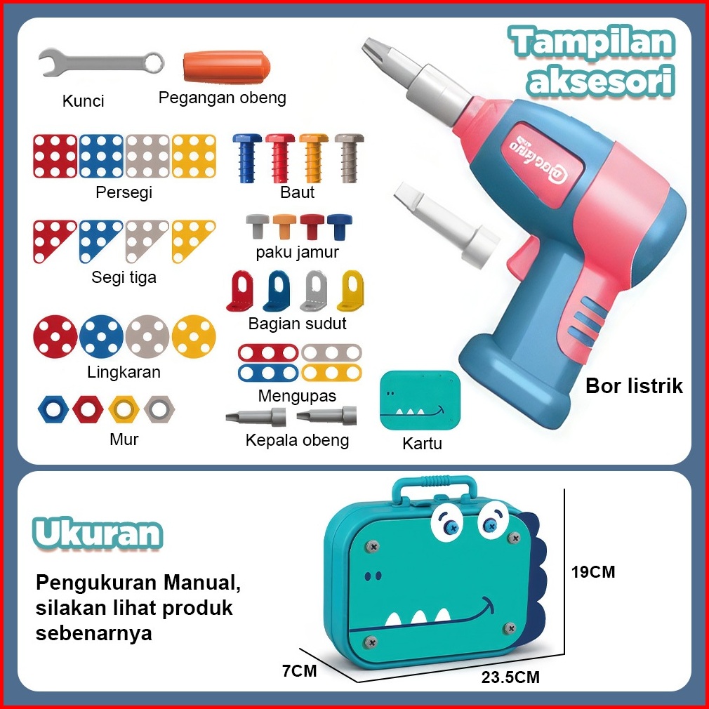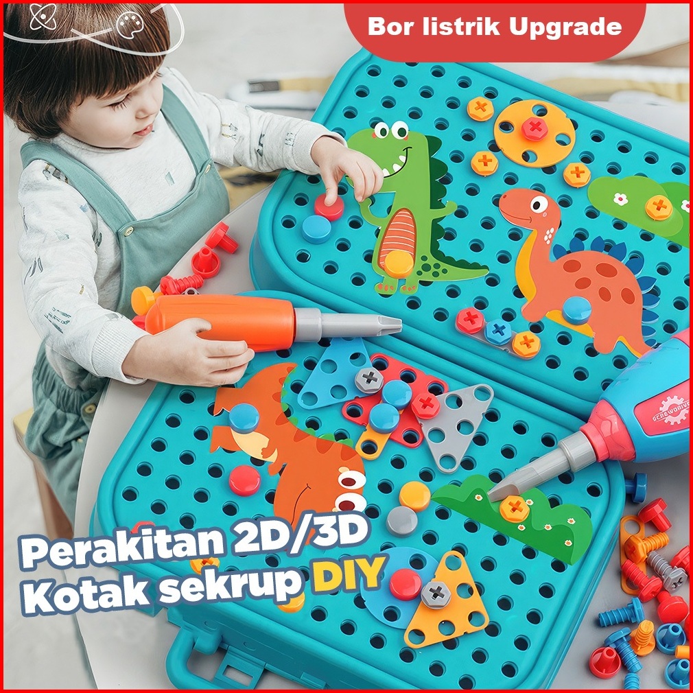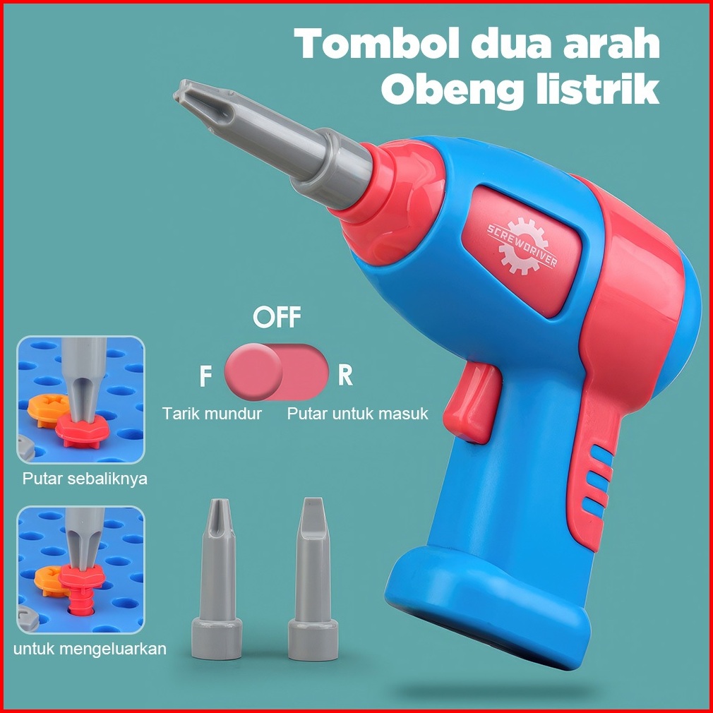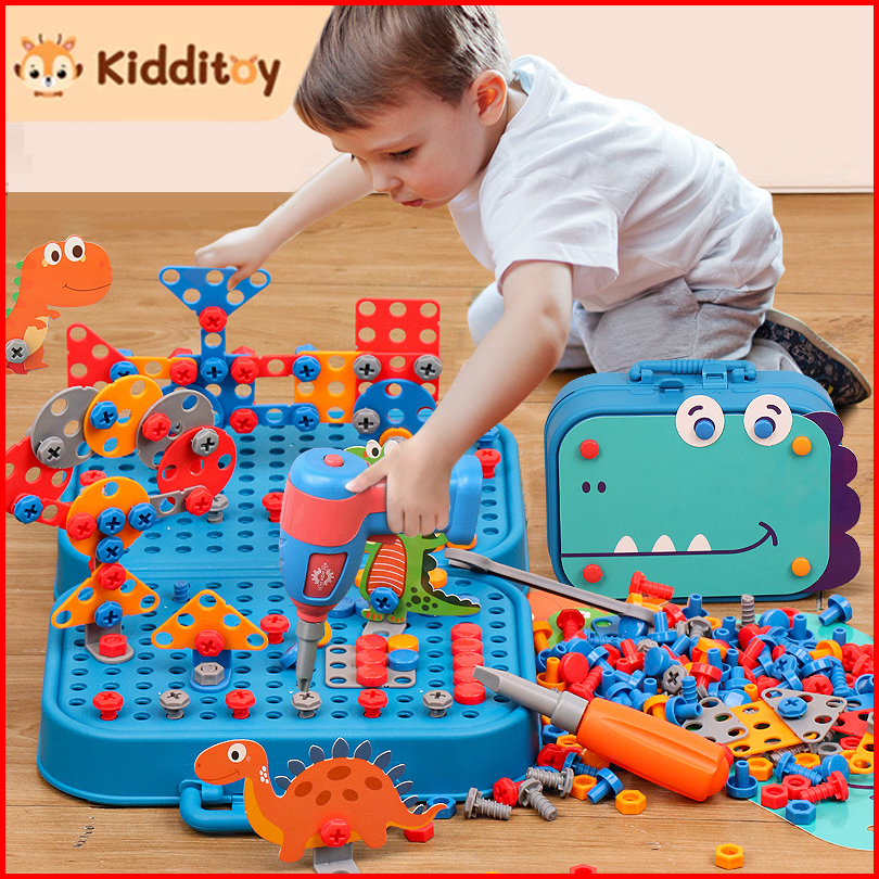 Kidditoy 461 Pcs Mainan Bor Listrik Mainan Tool Set Mainan Sekrup Anak