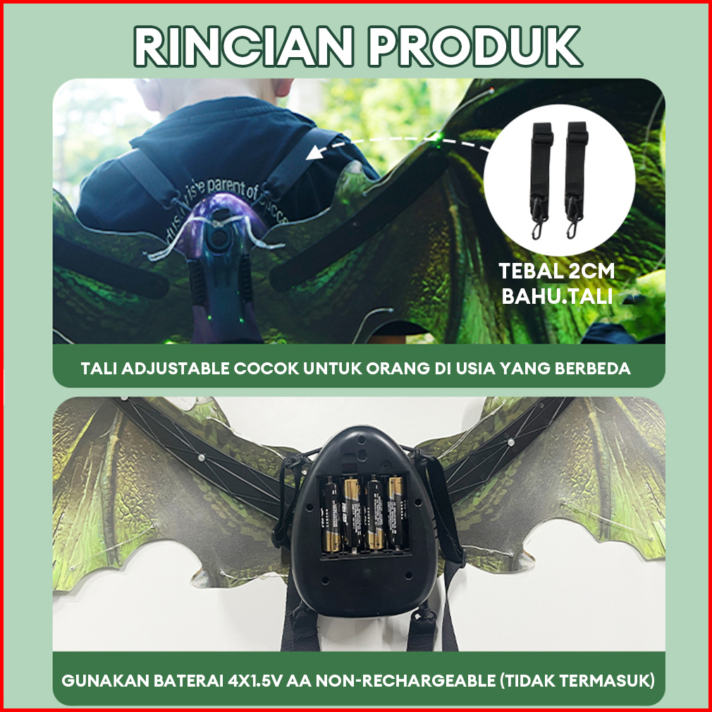 Limited Time Kidditoy Sayap Kupu-kupu Dinosaurus Listrik Anak Kostum Halloween Party Sayap Dino