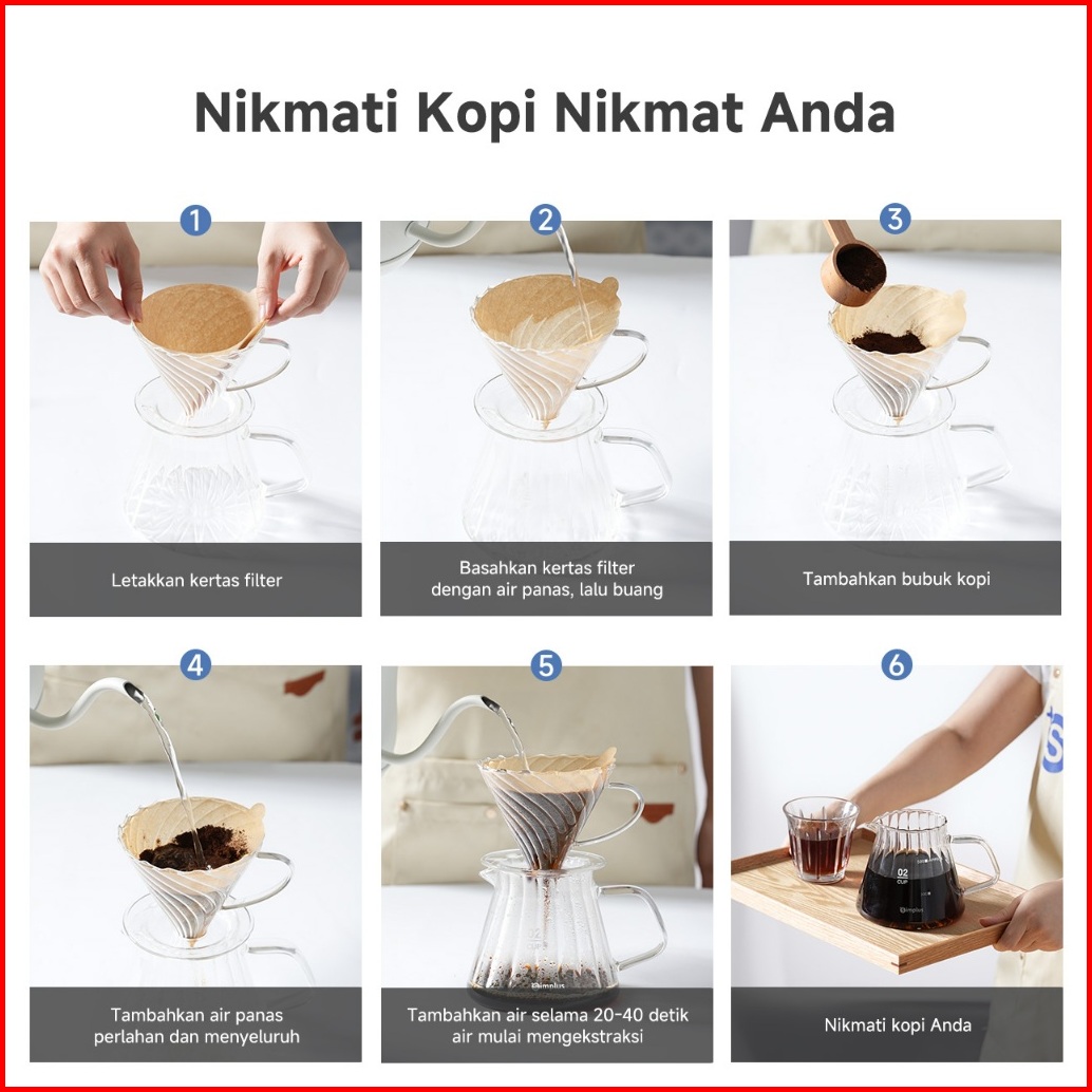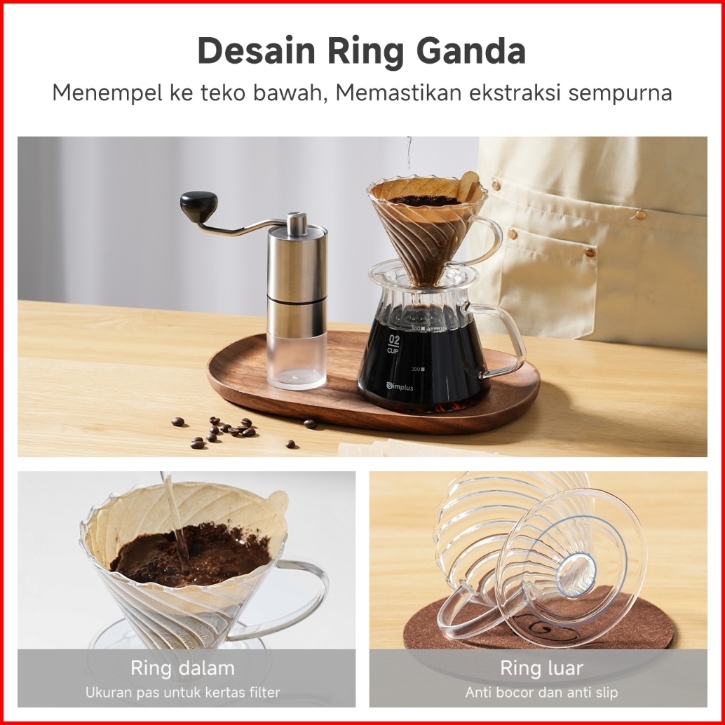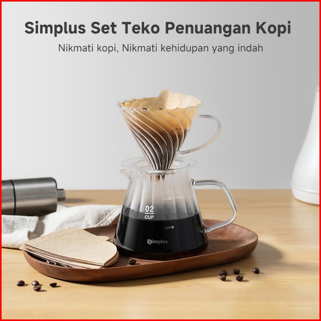 Simplus Pour Over Coffe Maker V60 Penuangan Kopi Kaca Borosilikat Tingkat Tinggi Teko Server Dengan 20 Kertas Filter