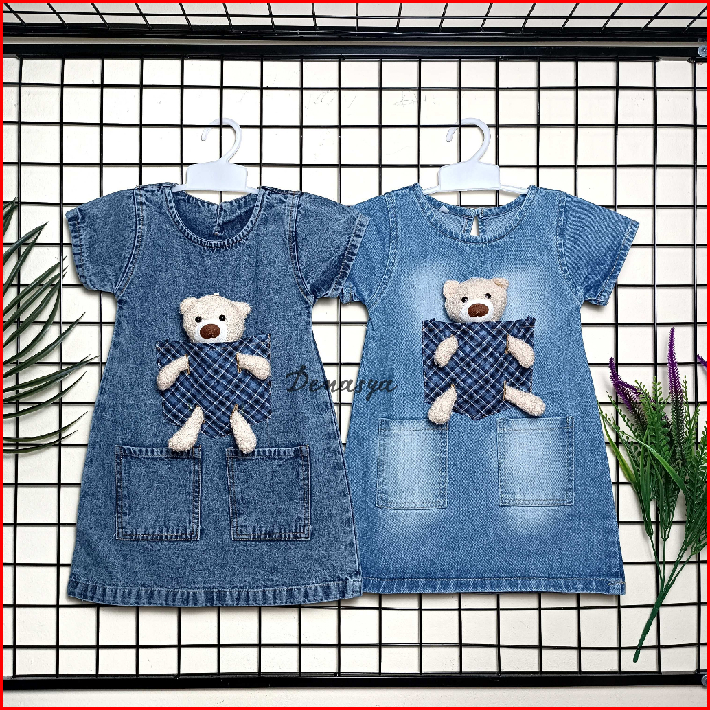 Dress Anak Perempuan Tunik Jeans Anak Motif Boneka Tunik Anak 1-9 Tahun