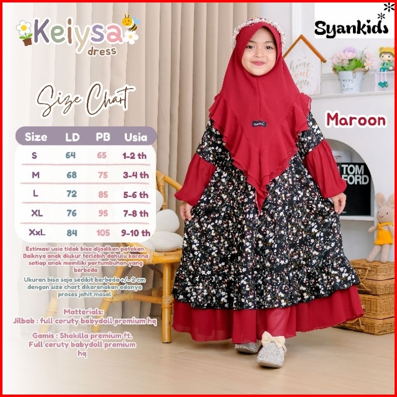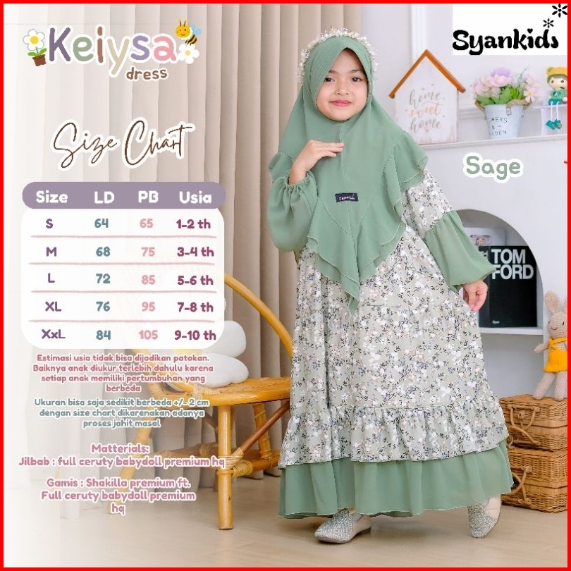 Gamis Anak Keysha Flowers Dress Kids Set Jilbab Syari By Syankids Usia 3 Sampai 10 Tahun