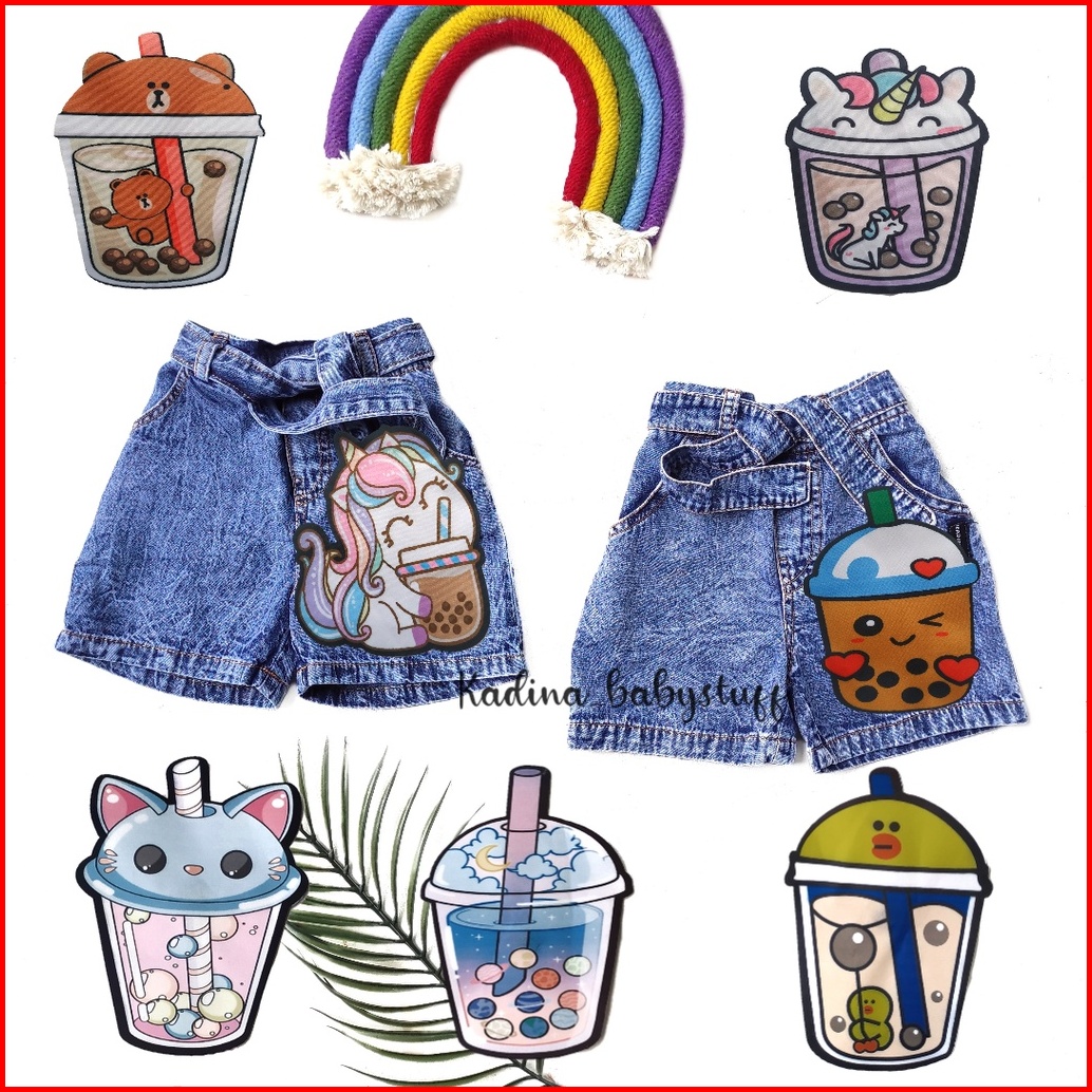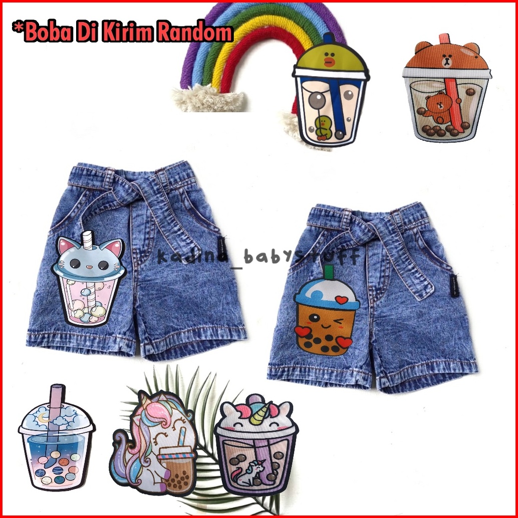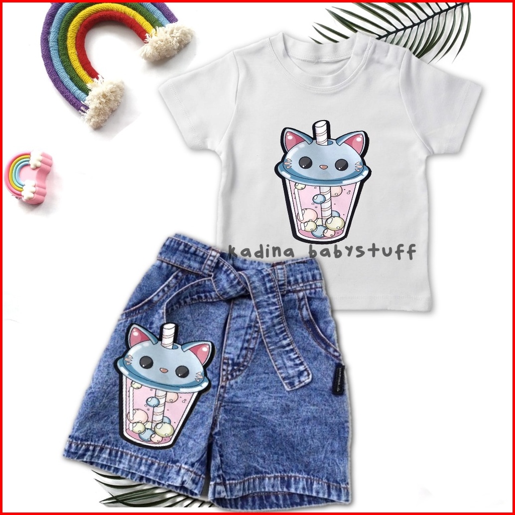 Setelan Anak Perempuan Hotpants Jeans Anak Boba Kekinian Hotpants Snow Wash Led Kaos Anak B0ba Led Celana Jeans Anak Per