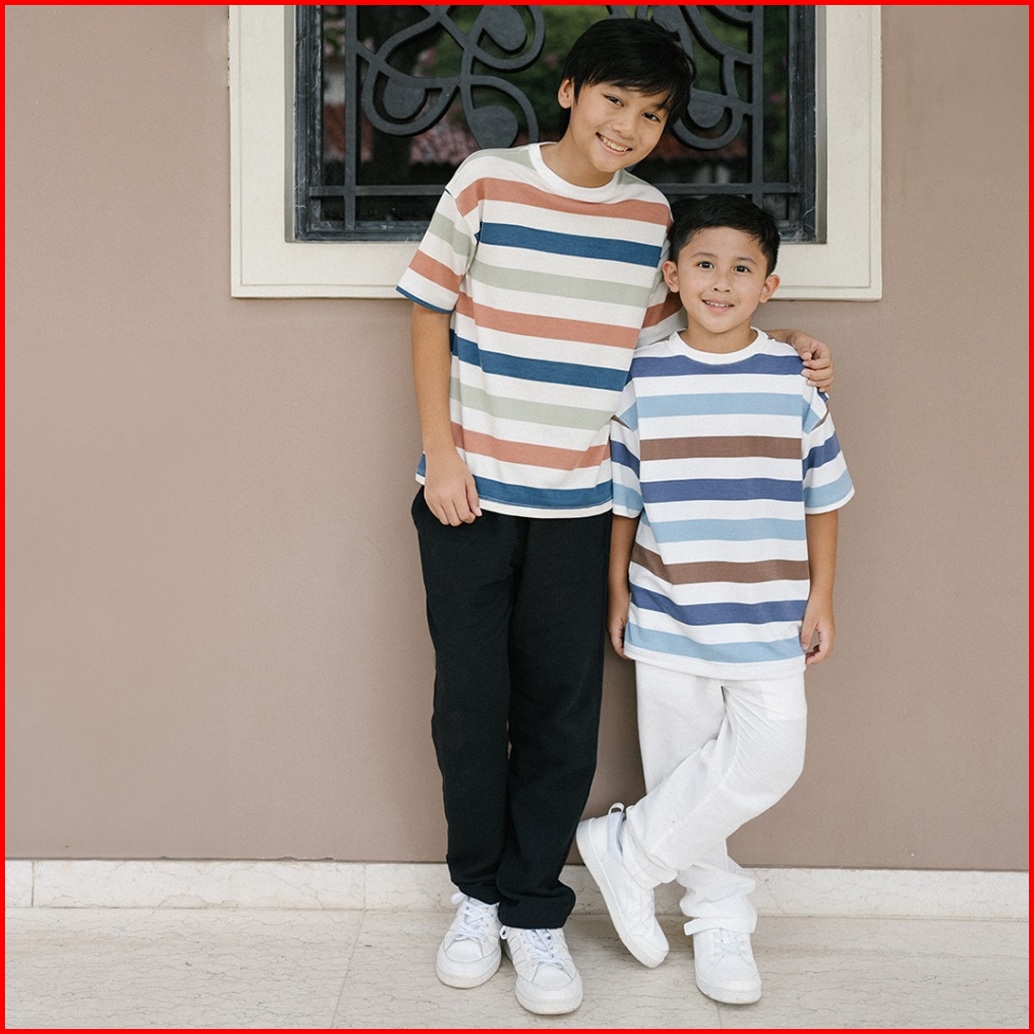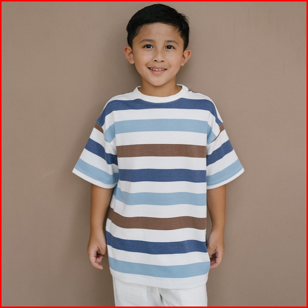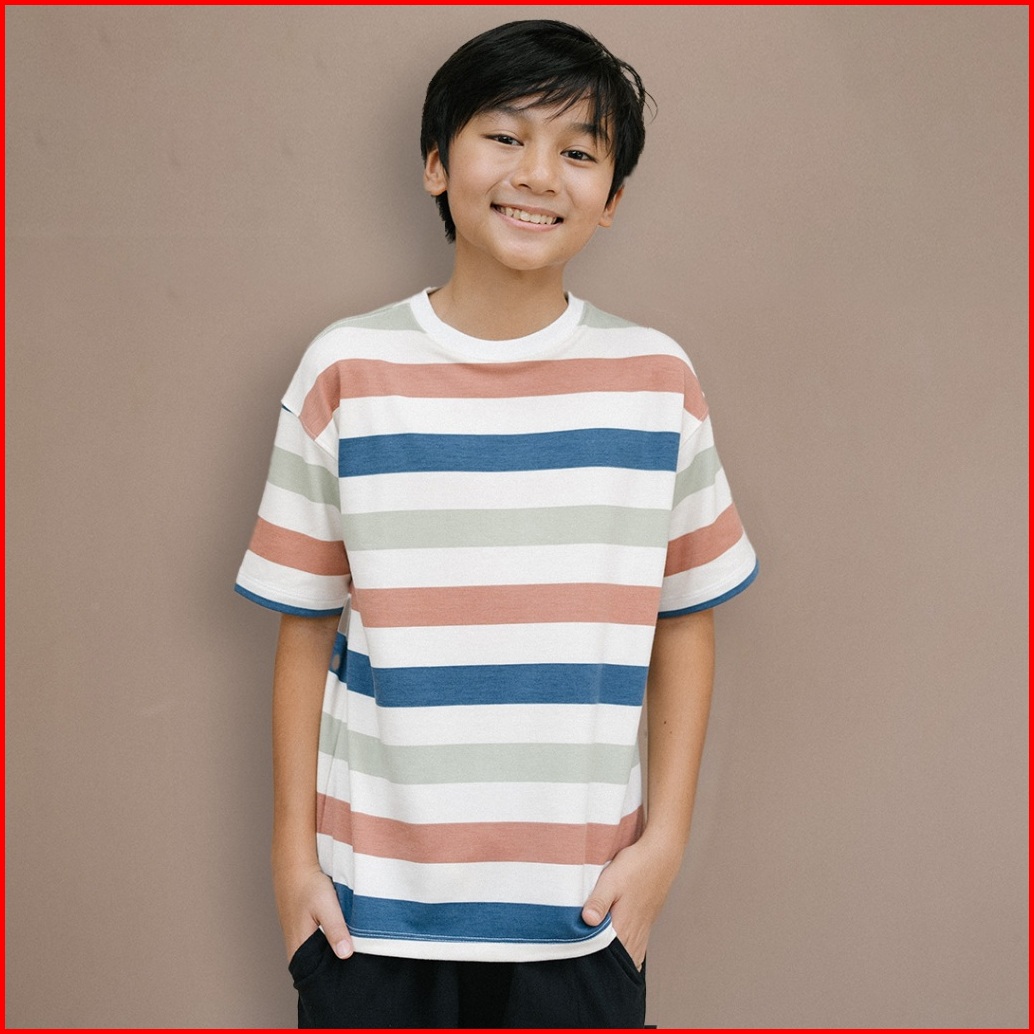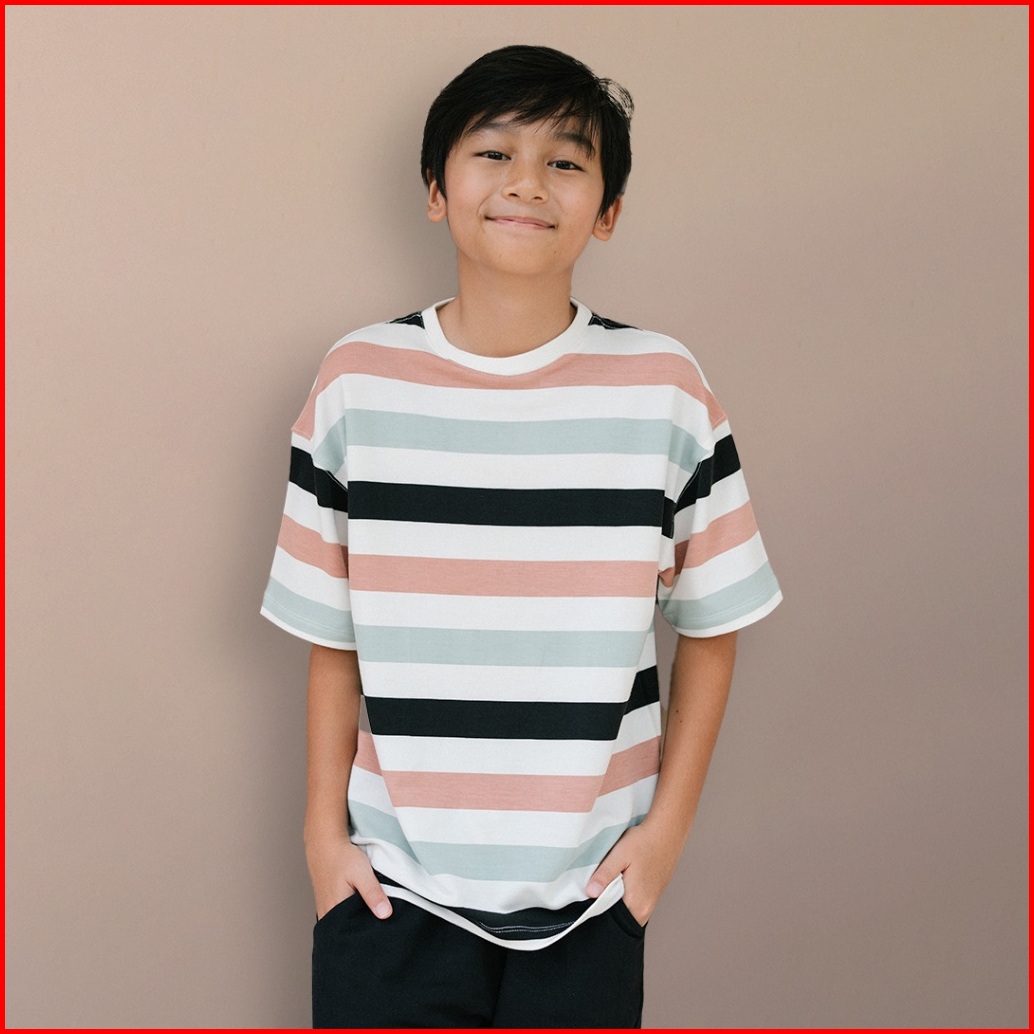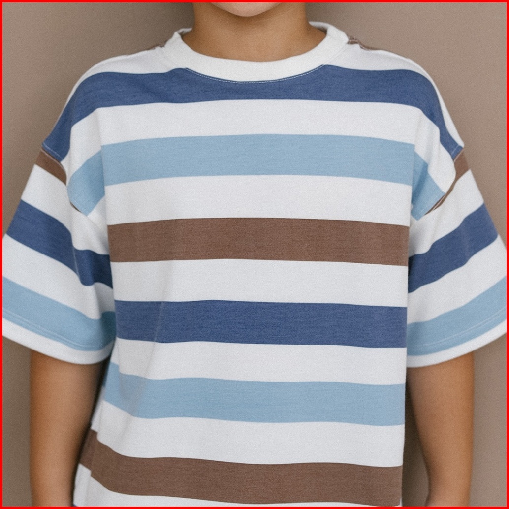 Lewis Emma - Big Stripe T-shirt 2-12 Tahun Kaos Oversize Anak Laki-laki Perempuan Baju Atasan Pakaian Lengan Pendek