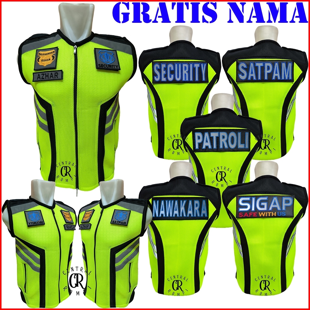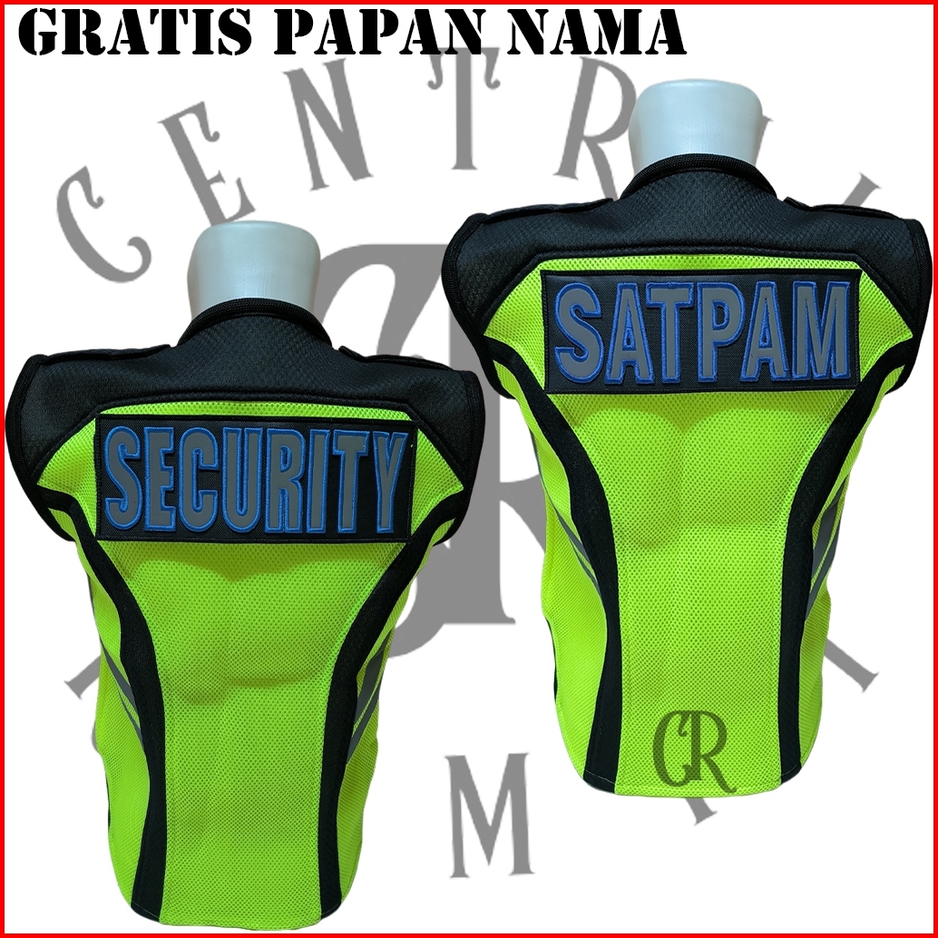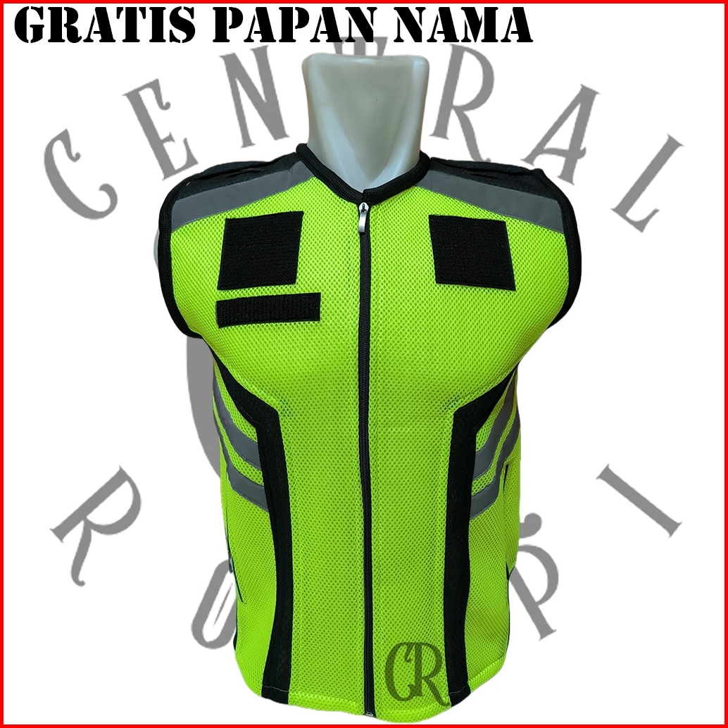 Rompi Jala Tebal Security Satpam Hijau Stabilo Plat Hitam