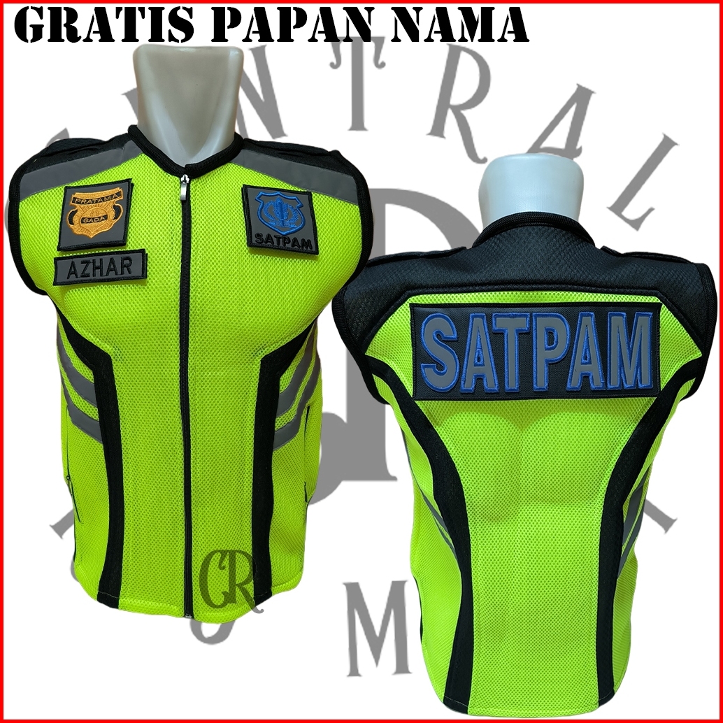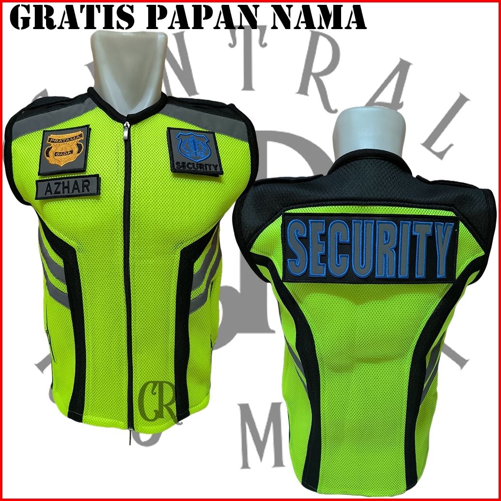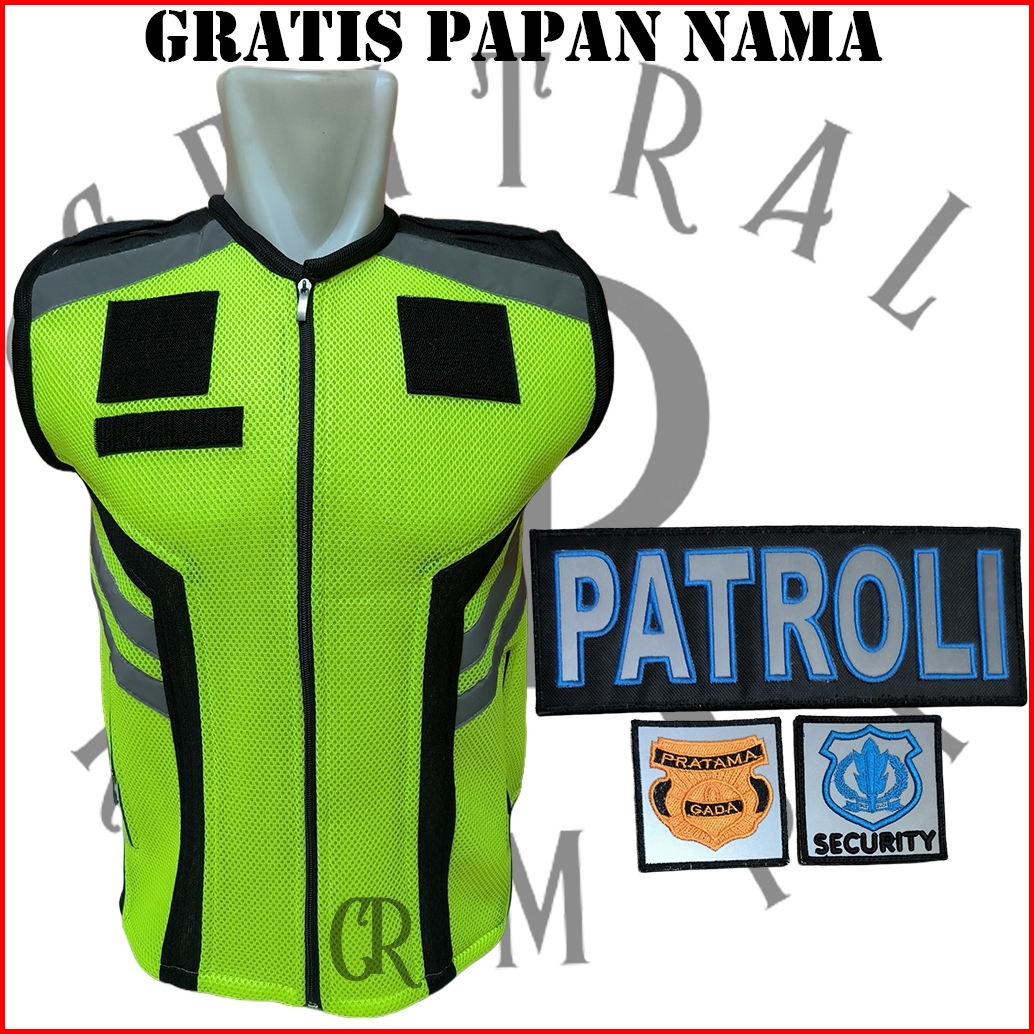 Rompi Jala Tebal Security Satpam Hijau Stabilo Plat Hitam