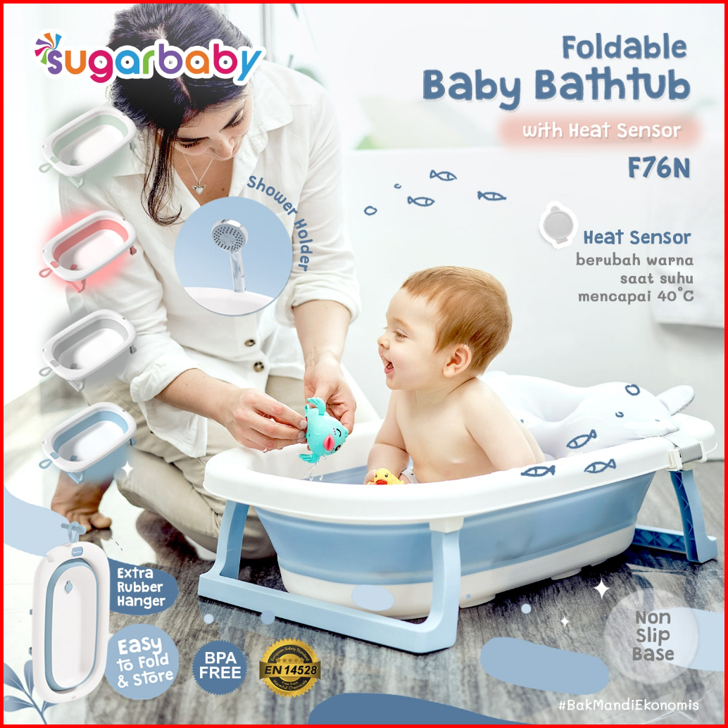 Sugar Baby Bak Mandi Bayi Foldable Baby Bathtub Dengan Sensor Panas Bantal Mandi Bayi Peralatan Mandi Tempat Mandi Bayi