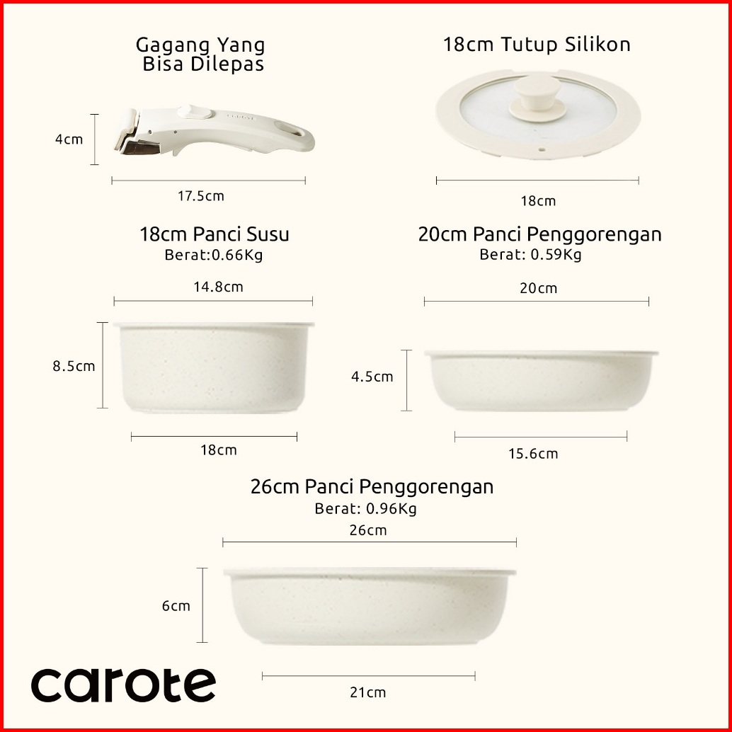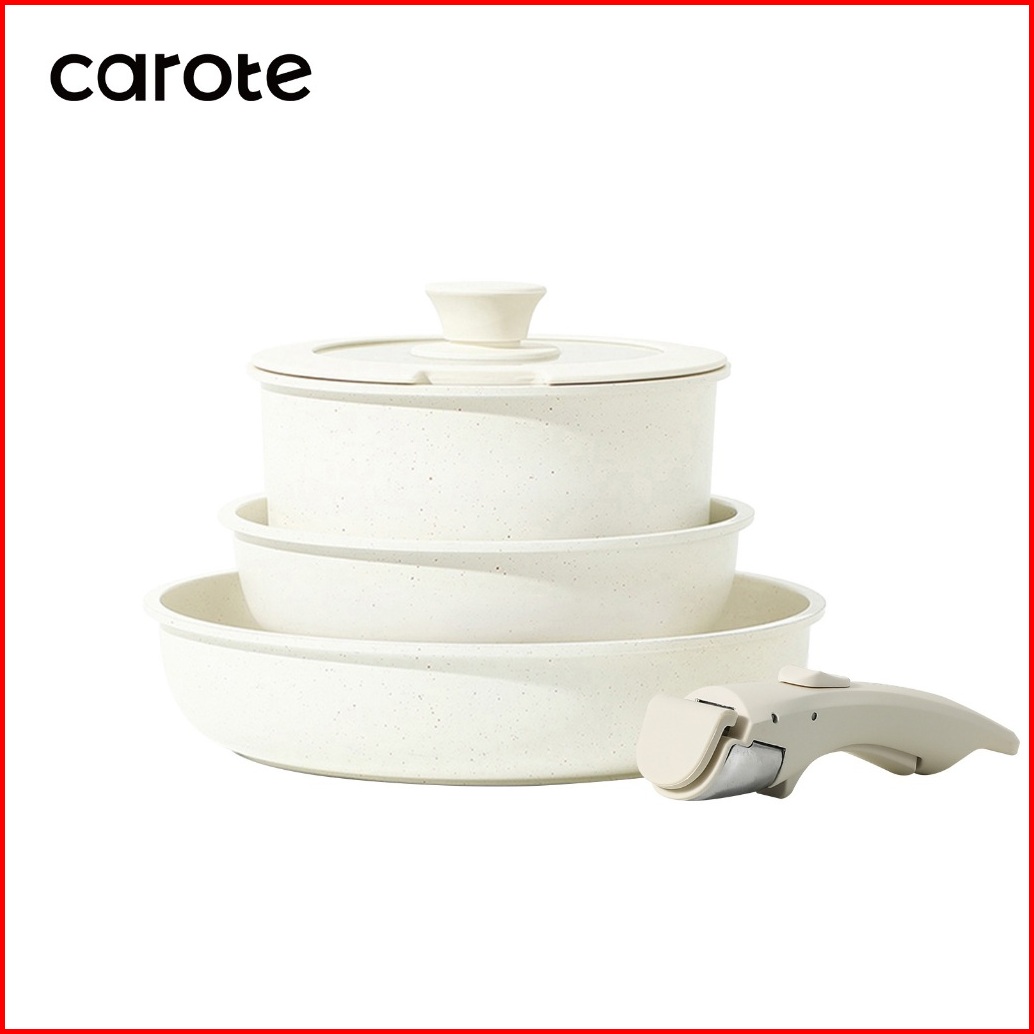 Carote Granit Putih Antilengket Peralatan Masak Dengan Pegangan Yang Dapat Dilepas Untuk Semua Kompor Bebas Pfoa Tidak M