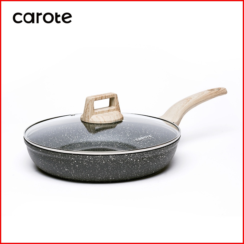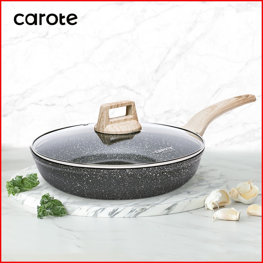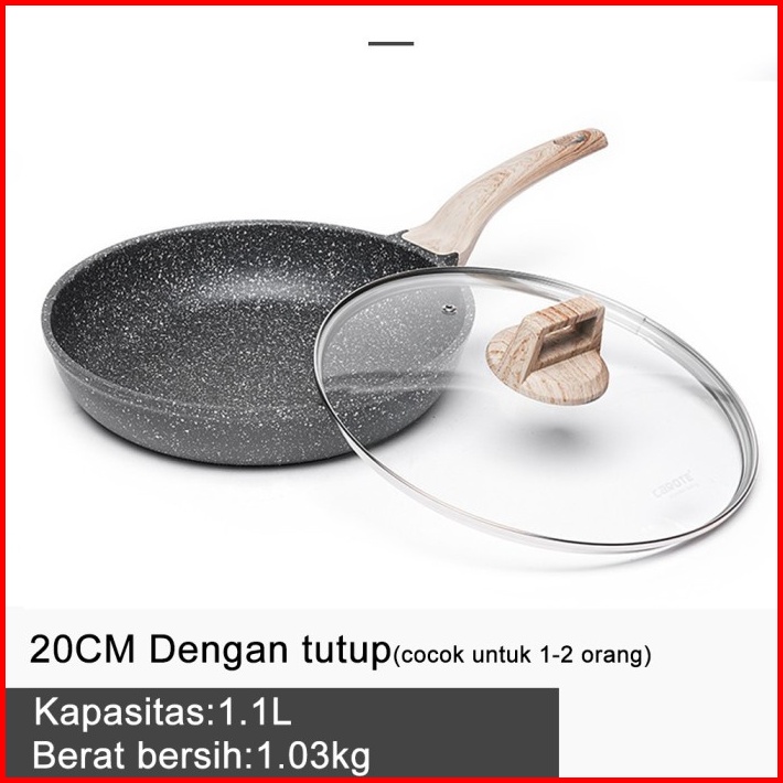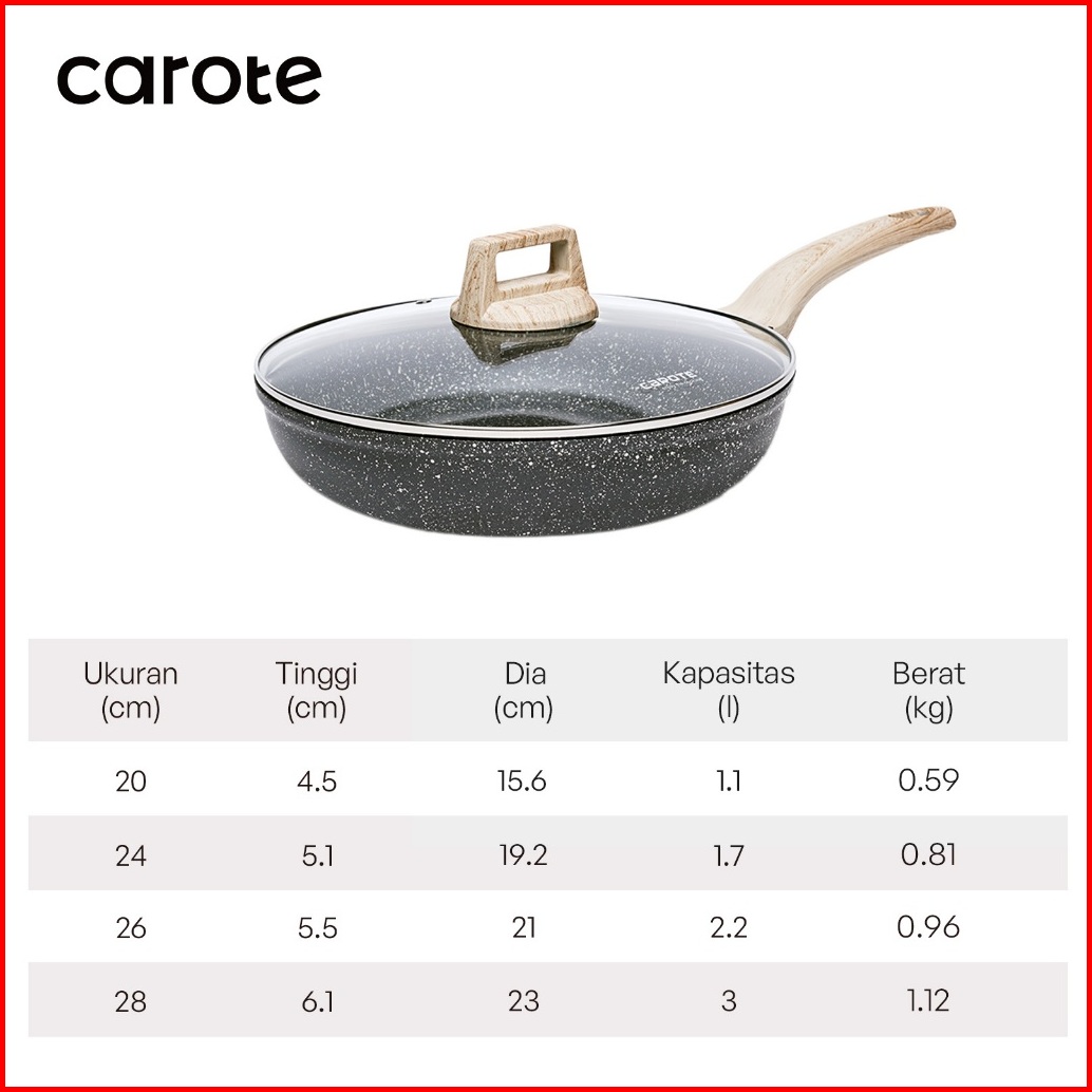 Carote Essential Woody Wajan Penggorengan Lapisan Anti Lengket Wajan Granit Dengan Tutup 20 24 27 28 Cm Cocok Untuk Semu