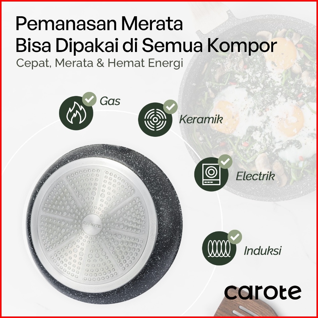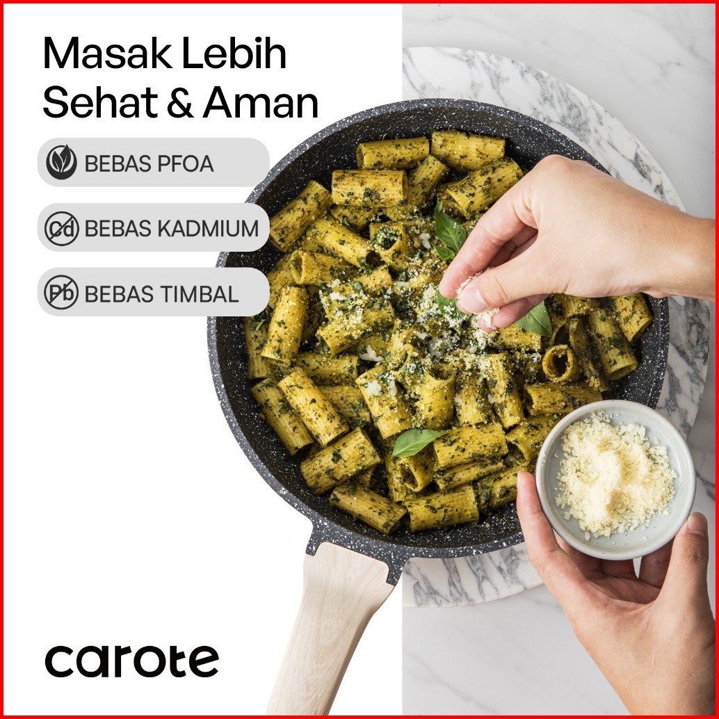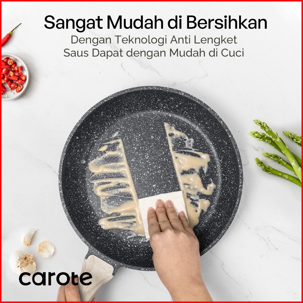 Carote Essential Woody Wajan Penggorengan Lapisan Anti Lengket Wajan Granit Dengan Tutup 20 24 27 28 Cm Cocok Untuk Semu
